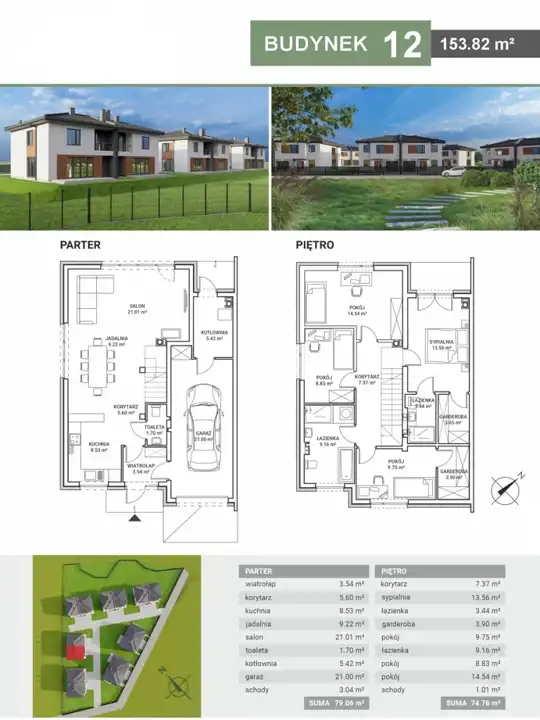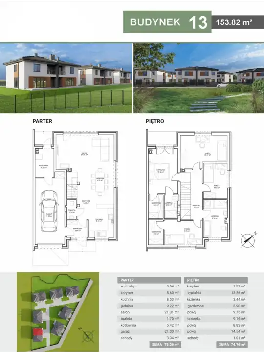 Inwestycja obejmuje budowę 14 domów energooszczędnych w zabudowie bliźniaczej. Budynki będą dwukondygnacyjne, każdy o powierzchni całkowitej 153,82 m kw. z garażem i miejscem postojowym.
