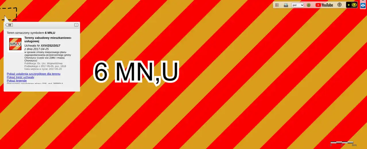 - Teren objęty MPZP; oznaczony symbolem 6MN, U - tereny zabudowy mieszkaniowo-usługowej.