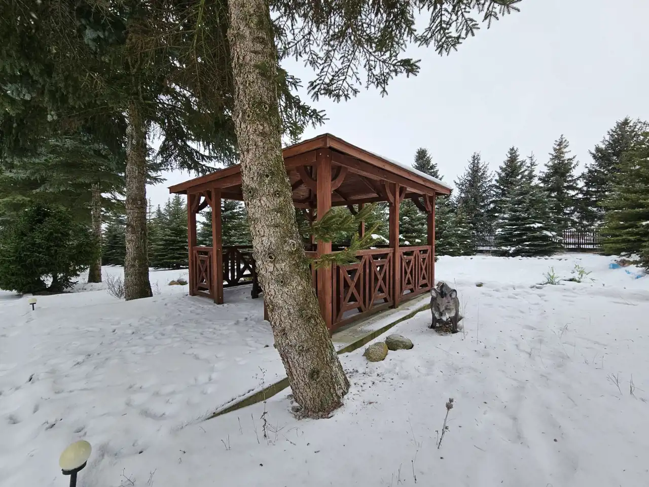 - Działka jest zagospodarowana, znajduje się na niej oczko wodne oraz funkcjonalna, drewniana altana;