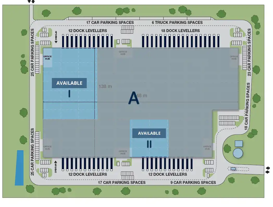 Minimalna powierzchnia najmu wynosi 2.200 m2, maksymalna - 7.200 m2.