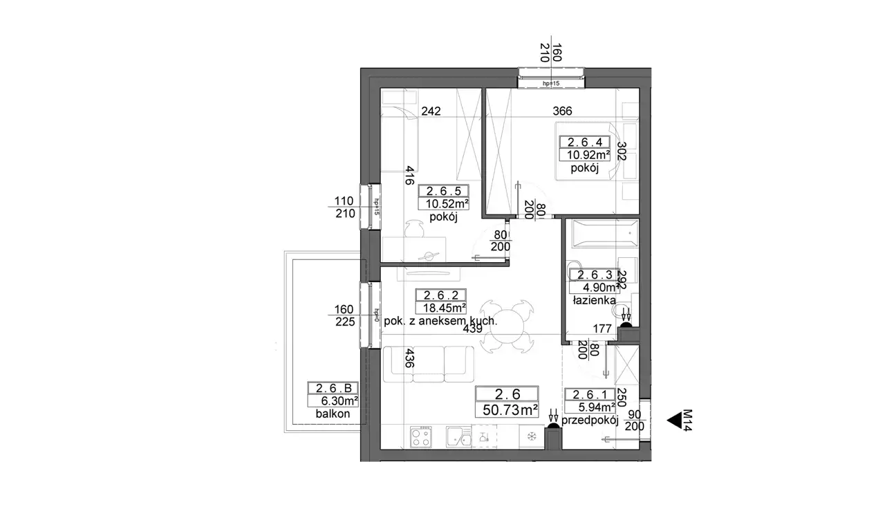 - Charakterystyka mieszkania 50.68 m2, 3 pokoje