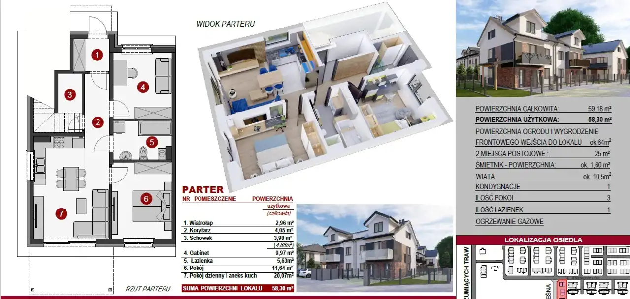- Charakterystyka mieszkania 59.18 m2, 3 pokoje, do wykończenia