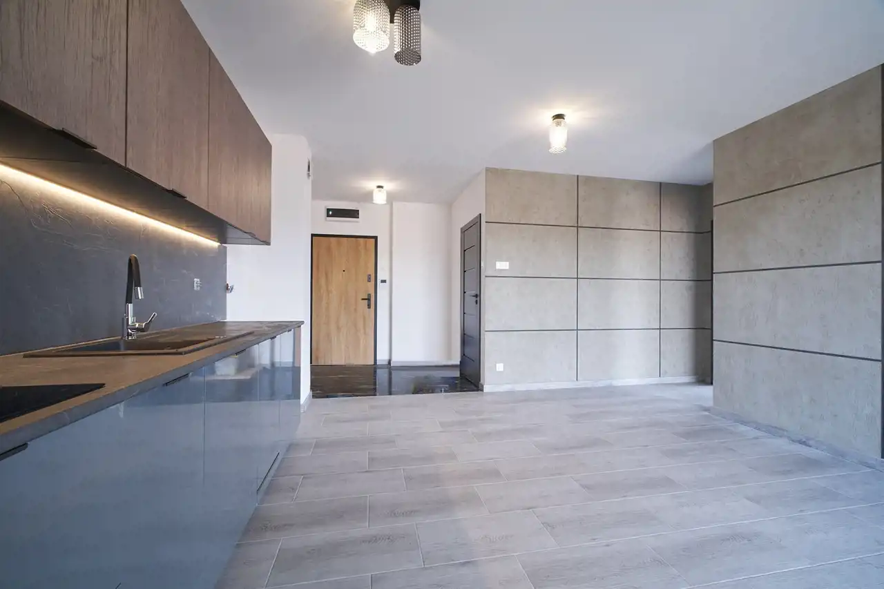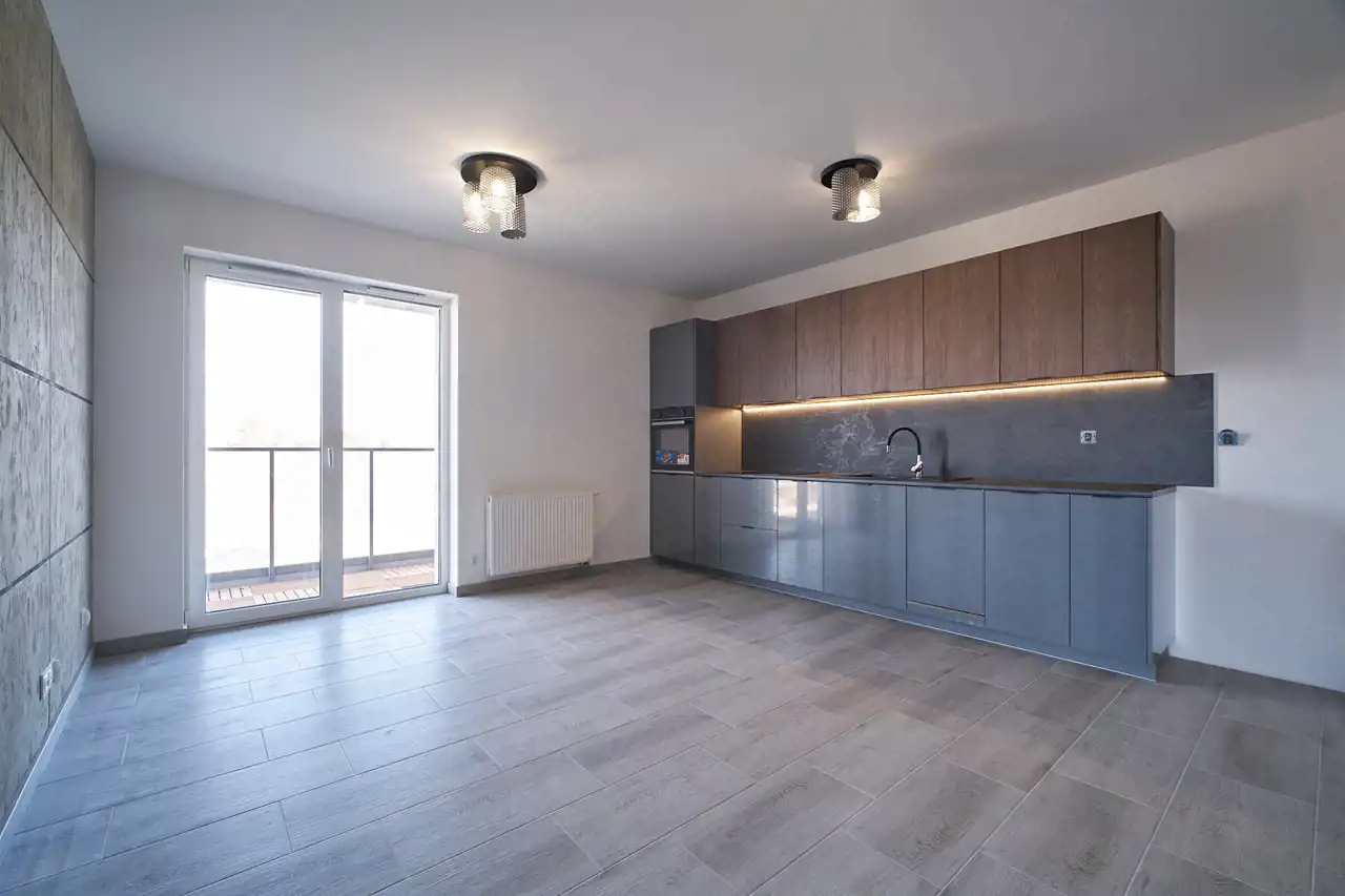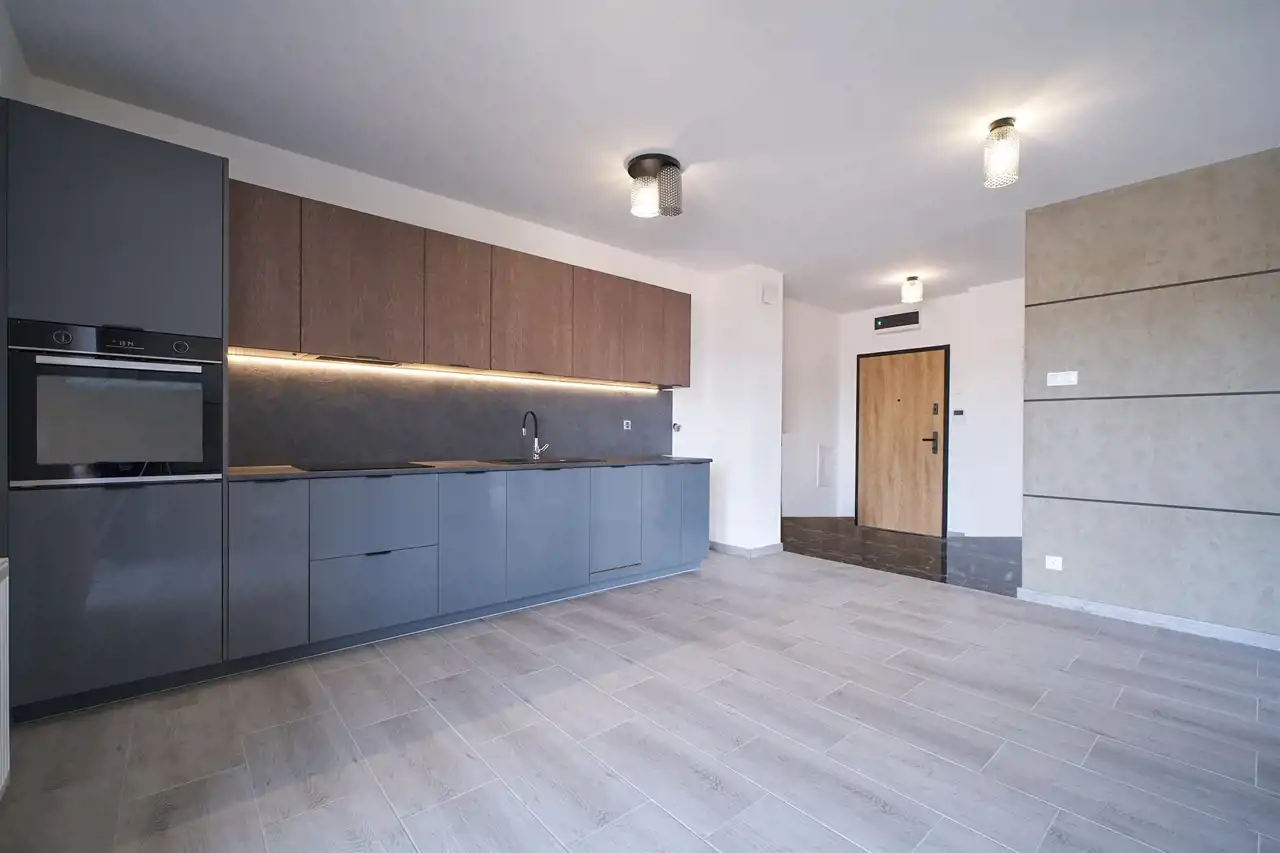 Nowoczesny, 3 pokojowy apartament składający się z dwóch oddzielnych sypialni oraz salonu połączonego z dużą, funkcjonalną kuchnią. Wszystko jest nowe i nikt tu jeszcze nie mieszkał.