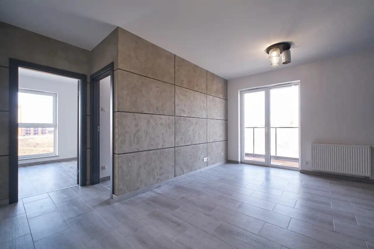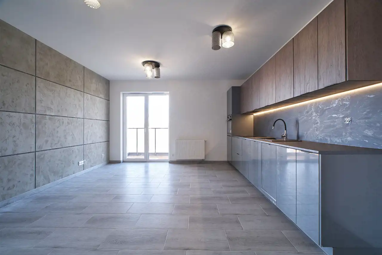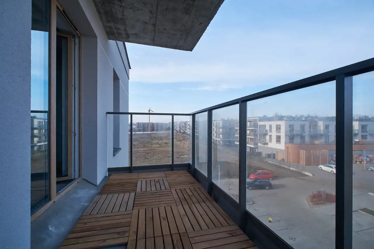 Nowoczesny, 3 pokojowy apartament składający się z dwóch oddzielnych sypialni oraz salonu połączonego z dużą, funkcjonalną kuchnią. Wszystko jest nowe i nikt tu jeszcze nie mieszkał.