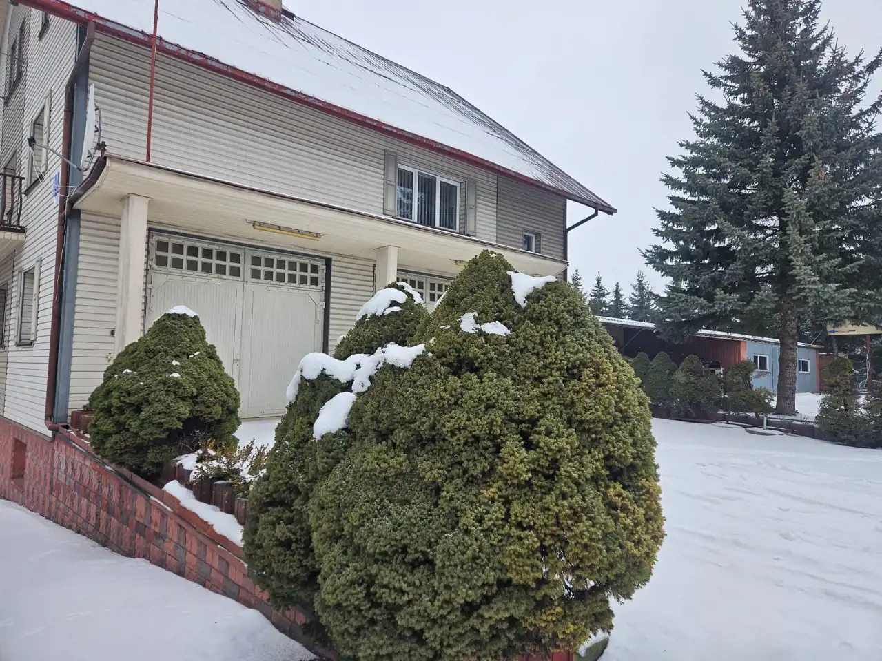 • Budynek: 3 kondygnacje + poddasze użytkowe, w skład nieruchomości wchodzą: przestronna sala bankietowa, bar oraz zaplecze kuchenne, sala konferencyjna, liczne pokoje z łazienkami i aneksami kuchennymi, 2 garaże/warsztaty z kanałami, w tym profesjonalne wyposażenie (m.in. podnośnik), pomieszczenia gospodarcze i techniczne;