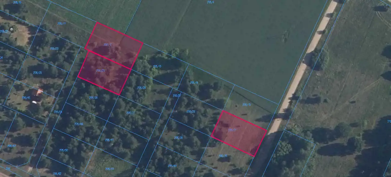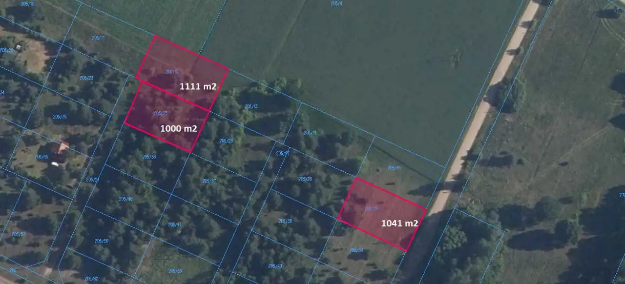 Do sprzedaży 3 działki rekreacyjne o powierzchni: 1111 m2, 1000 m2, 1041 m2 znajdujące się w miejscowości Mącice, w powiecie przasnyskim.
