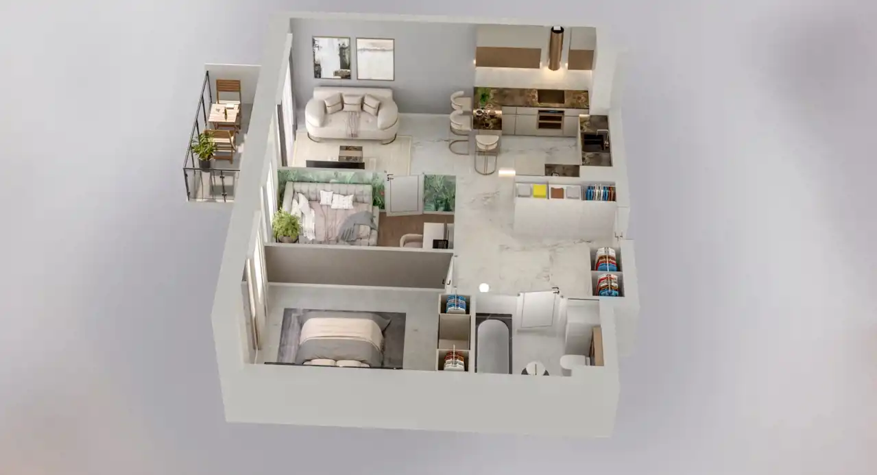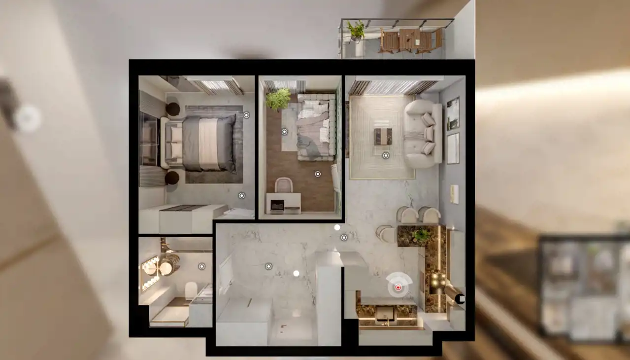 Mieszkanie przystosowane jest do systemu Smart Home, który umożliwia sterowanie: