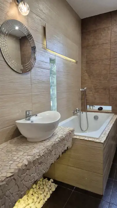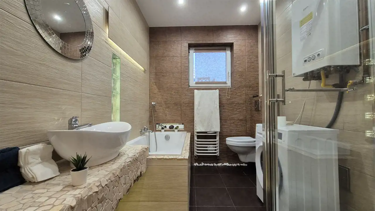 - funkcjonalna łazienka z wanna i kabiną prysznicową