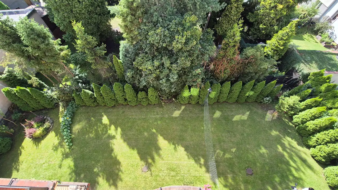 - Ogrodzony teren wokół budynku zapewnia bezpieczeństwo i prywatność; zagospodarowany zielenią