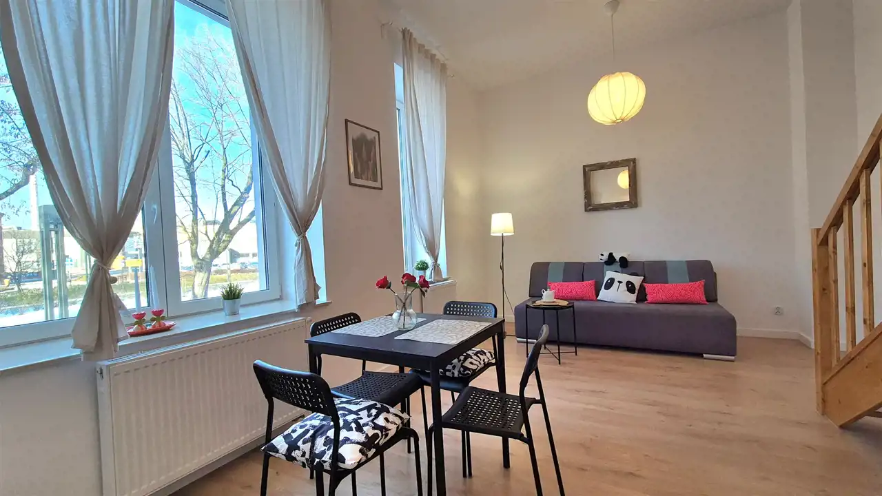 Do Rynku 2 minuty pieszo, przystanek tramwajowy i autobusowy - 2 minuty pieszo.