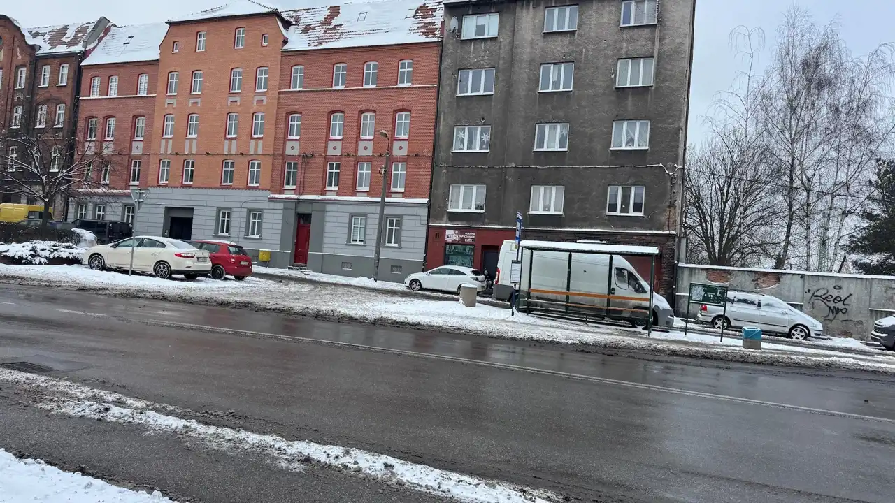 Przystanek komunikacji miejskiej tuż przed kamienicą