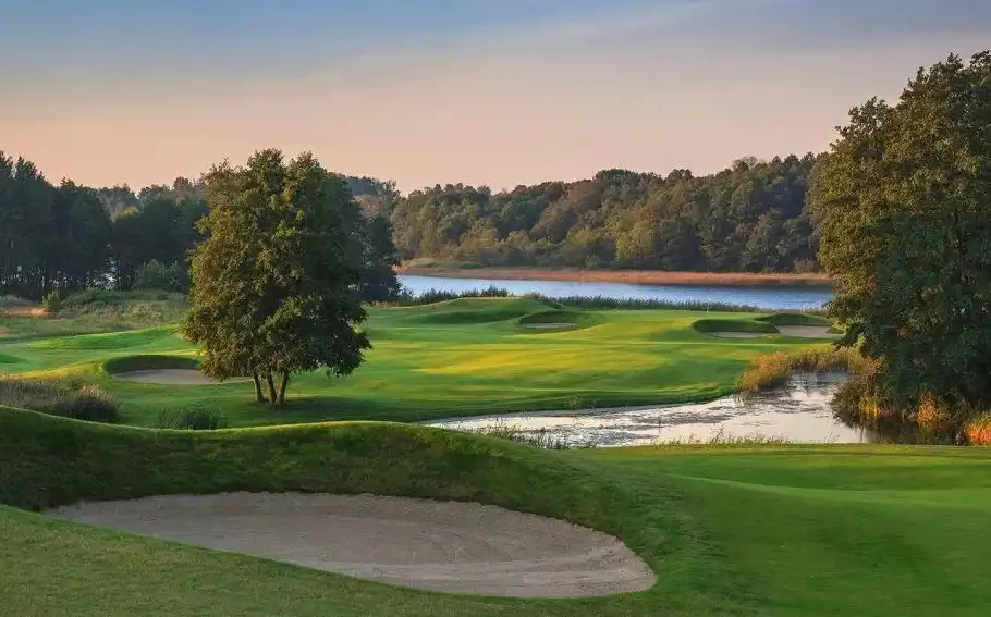 Polecam działkę z uwagi na atrakcyjne położenie nad jeziorem i przy polu golfowy.
