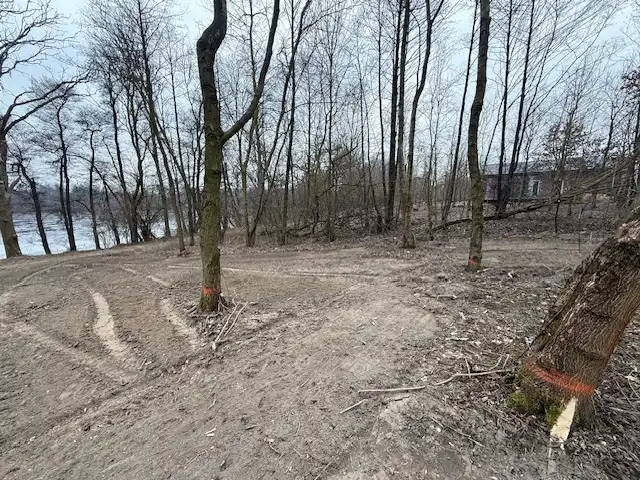Działka jest prawie płaska, sąsiaduje z pasem działki gminnej otaczającej jezioro (pas plaży) czyli można uznać, że działka ma granicę z jeziorem. Teren działki jest oczyszczony , wykarczowano drzewa i krzewy, grunt powierzchniowo przesiany w celu usunięcia pozostałości korzeni. Oczyszczono też pas od jeziora. Zdjęcia przedstawiają działkę i otoczenie. Odległość do pola golfowego około 400m. Na sąsiednich działkach już są budowane domy lub wybudowane. Pole golfowe w pełni funkcjonuje. Jezioro jest wędkarsko zagospodarowane, z pomostami wędkarskimi i dużym molo.