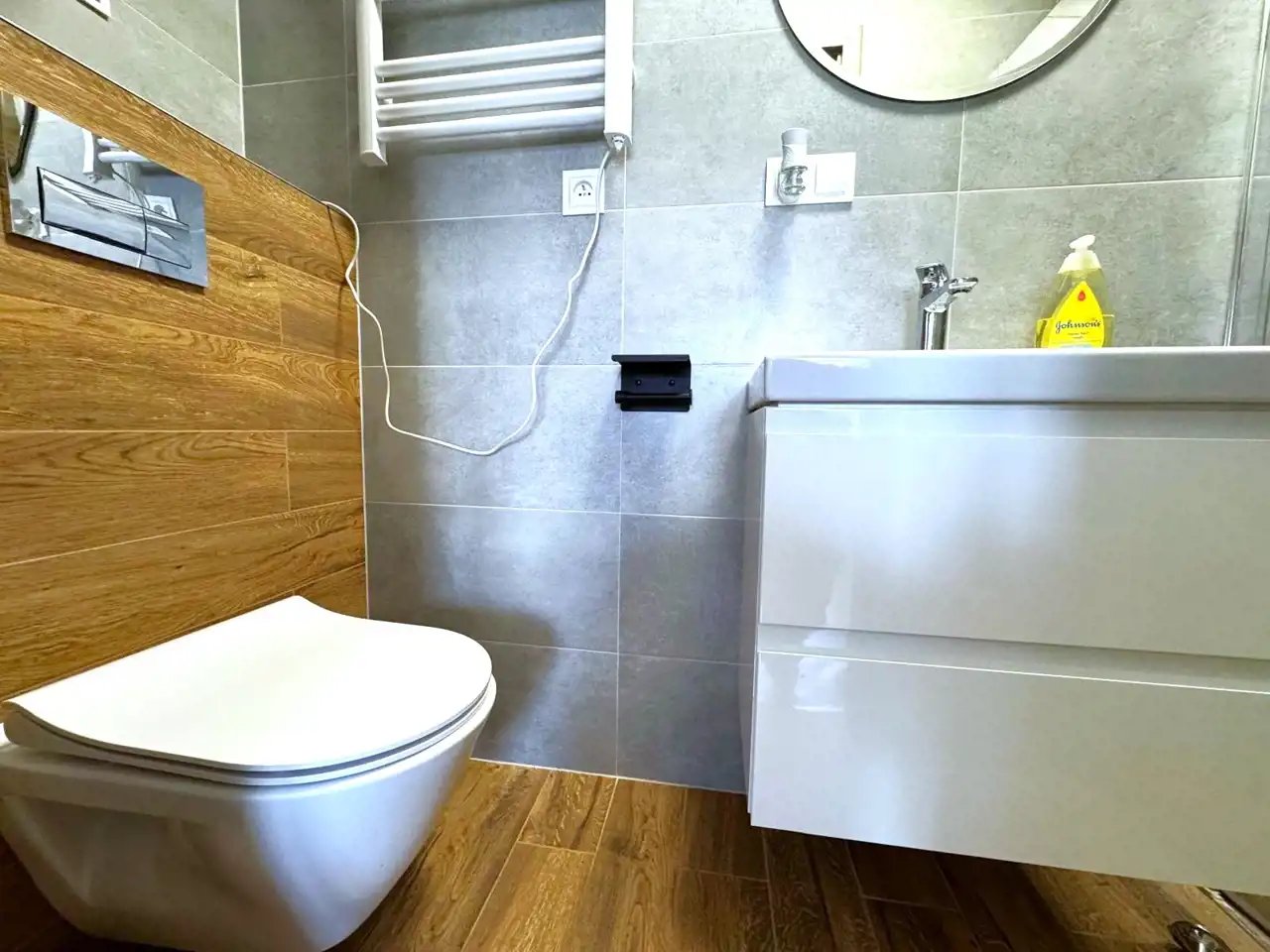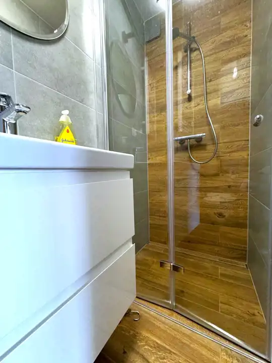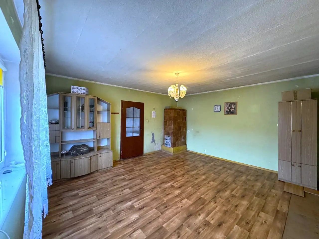 Mieszkanie składa się z jasnego i przestronnego salonu, sypialni, przedpokoju, kuchni oraz łazienki z kabiną prysznicową wraz z WC. Do mieszkania przynależy strych do adaptacji o powierzchni około 60m2, piwnica, komórka lokatorska, a także 400 metrowy ogródek.