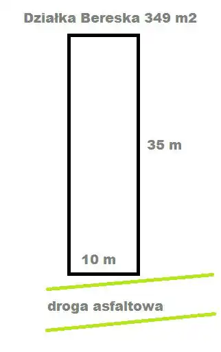- Działka płaska o kształcie prostokąta, o wymiarach ok.10X35 m,