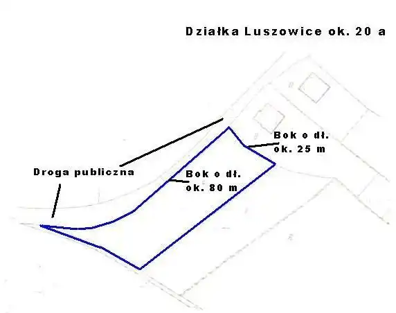- Działka płaska, w kształcie prostokąta o wymiarach ok. 25X80 m,
