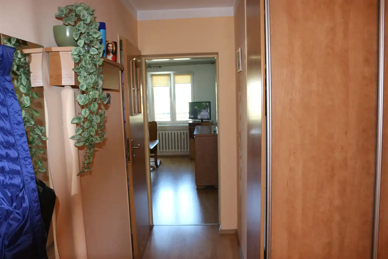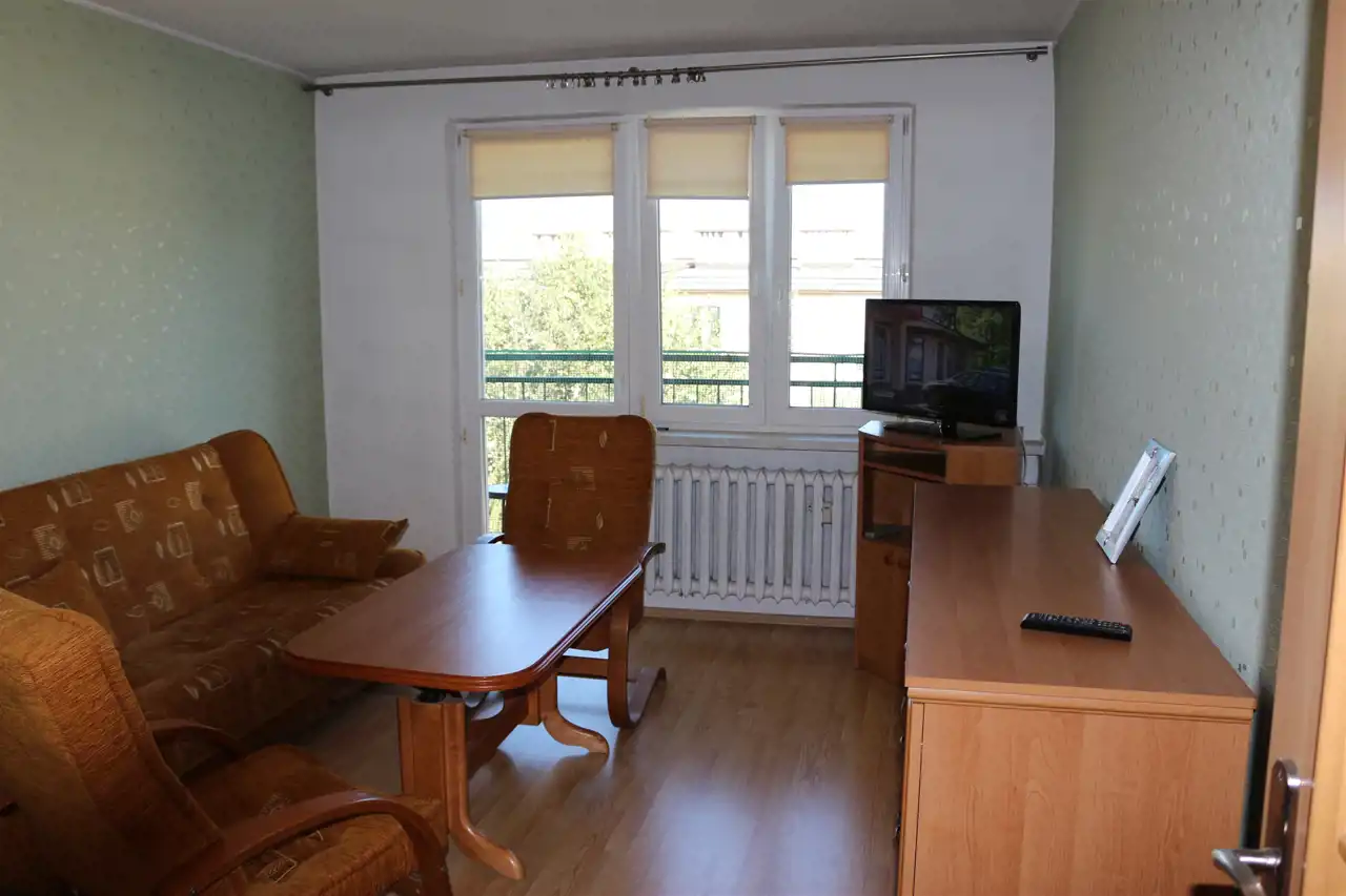 Mieszkanie o pow. 45,5 m2 składające się z 2 pokoi, kuchni, przedpokoju, łazienki z WC oraz przynależnej piwnicy.