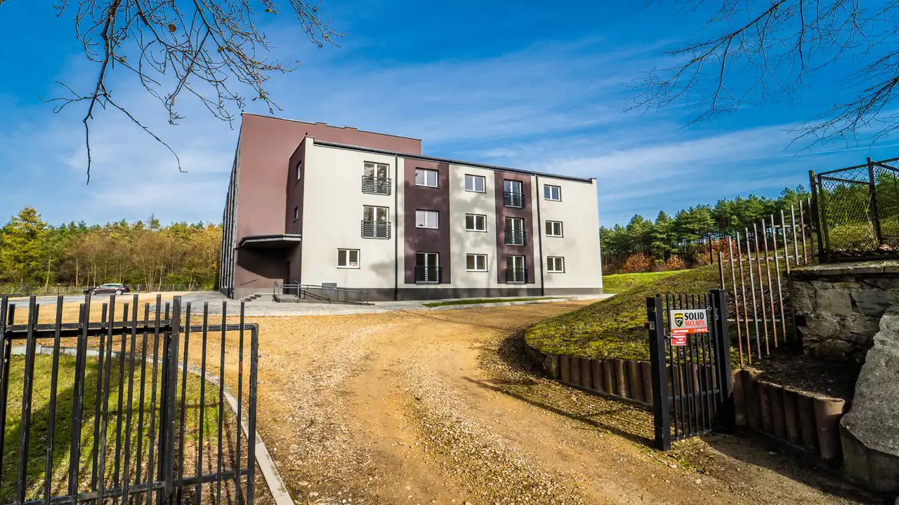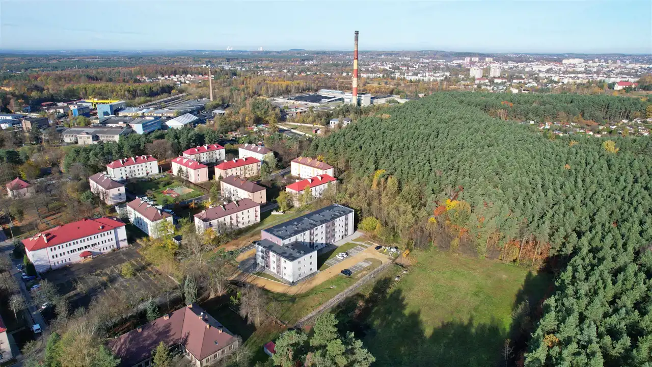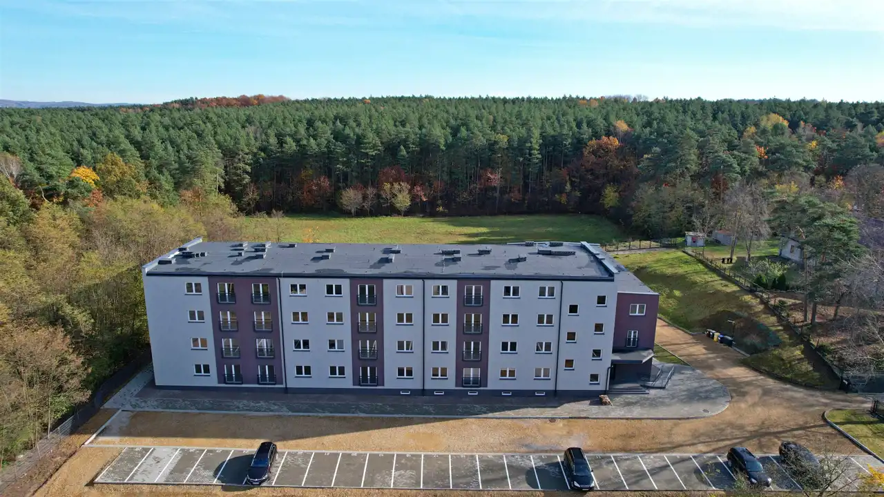 Mieszkanie w Chrzanowie położone na 1. piętrze w 3 piętrowym budynku, zlokalizowanym w zielonej enklawie - w bezpośrednim sąsiedztwie lasu . Budynek posiada 44 mieszkania. Do każdego z mieszkań przynależy zewnętrzne miejsce postojowe oraz komórka lokatorska na poziomie piwnicy. Działka na którym posadowiony jest budynek ma pow. 0,60 ha i jest ogrodzona. Budynek wybudowany w technologii tradycyjnej, gruntownie zmodernizowany. Ściany zewnętrzne z pustaków, ocieplone styropianem, okna pcv, ogrzewanie z sieci miejskiej, system ciepłej wody do indywidulanego montażu (bojler elektryczny lub przepływowy podgrzewacz wody), brak gazu. Modernizacja zakończona w 2022 r.
