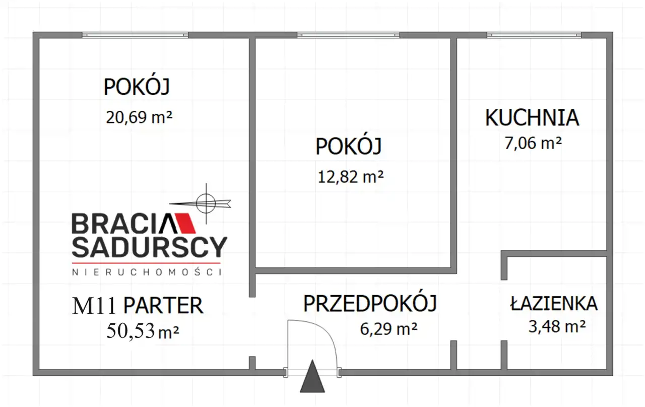 Oferta dotyczy mieszkania o pow. 50,53 m2. Mieszkanie na 1. piętrze, składa się z pokoju dziennego (20,69 m2), pokoju (12,82 m2), kuchni (7,06 m2), łazienki (3,48 m2) oraz przedpokoju (6,29 m2).