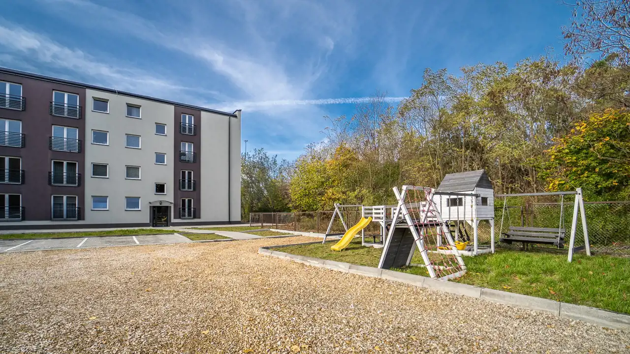 Osiedle zyskuje kameralnego charakteru dzięki odizolowaniu od zgiełku większych skupisk mieszkalnych. Pomimo tego, na pobliskim Osiedlu Młodości, w odległości zaledwie 1,5 km mieści się dobrze rozwinięta infrastuktura handlowo-usługowa: liczne sklepy, szkoła podstawowa, przychodnie lekarskie i apteki. W najbliższym sąsiedztwie znajdują się też osiedlowe Delikatesy (150 m.). W otoczeniu budynku, dzięki bliskości lasu, znajdziemy liczne tereny spacerowe i rekreacyjne, a w odległości 5 km kąpielisko miejskie, plażę i ośrodek wypoczynkowy nad Jeziorem Chechelskim.