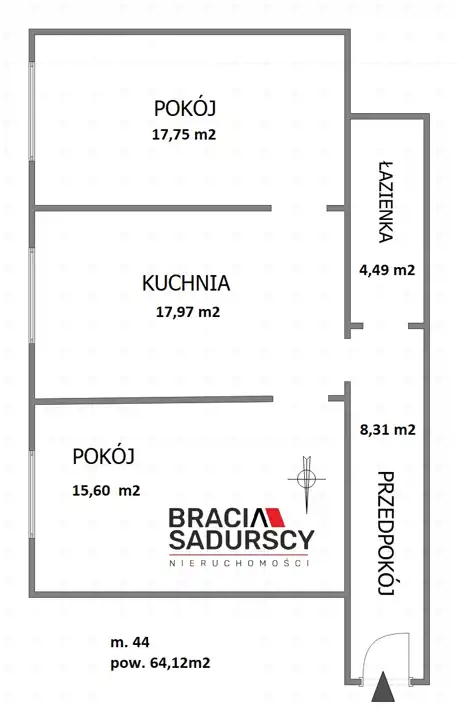 - Charakterystyka mieszkania 64.12 m2, 2 pokoje