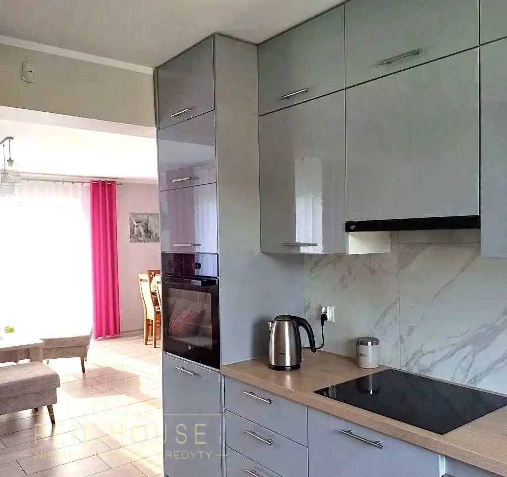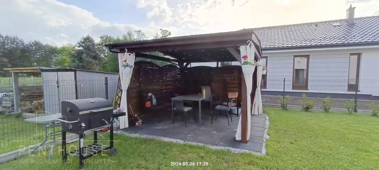Garaż na dwa samochody w bryle budynku 9mx6m o wys 5m oraz garaż/wiata zamknięta na jeden samochód. W całym domu wraz z garażem wykonane jest ogrzewanie podłogowe. Cały budynek posiada zewnętrzny monitoring (8 kamer) oraz system alarmowy renomowanej firmy rozbudowany o czujnik dymu oraz gazu. Każde pomieszczenie posiada indywidualny termostat do ogrzewania podłogowego, co zwiększa komfort oraz oszczędności w stosunku do jednego centralnego sterownika. Wszelkie opisane instalacje są podłączone „po kablach” pod tynkiem a nie na wi-fi, w czym jest bardziej precyzyjnym. Brama sterowana elektrycznie/na pilota.