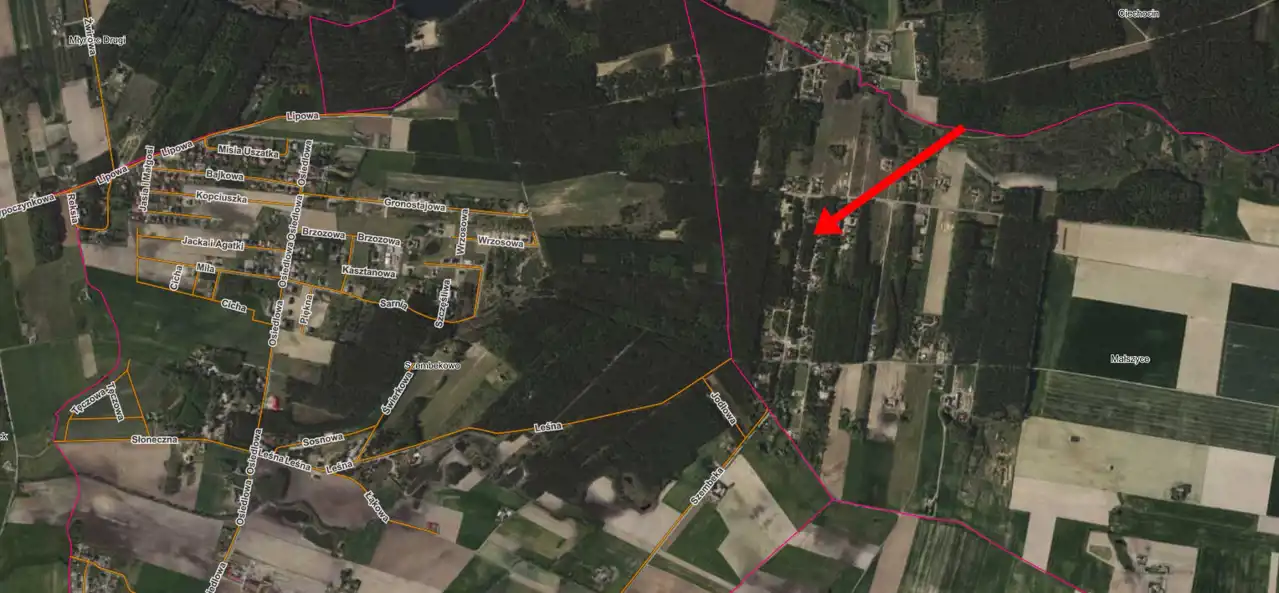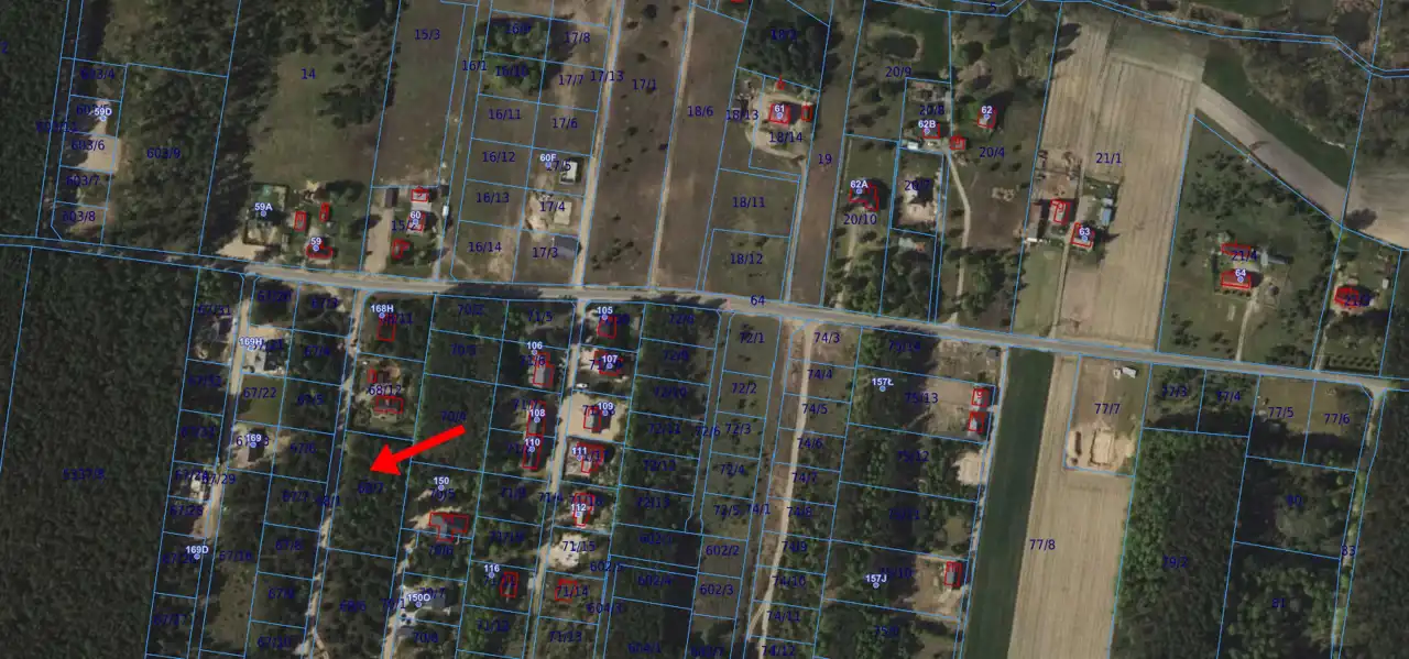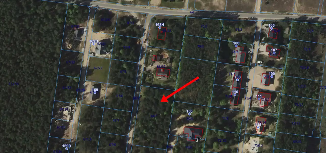 Działka o numerze ewidencyjnym 68/7 znajduje się na zalesionym terenie.