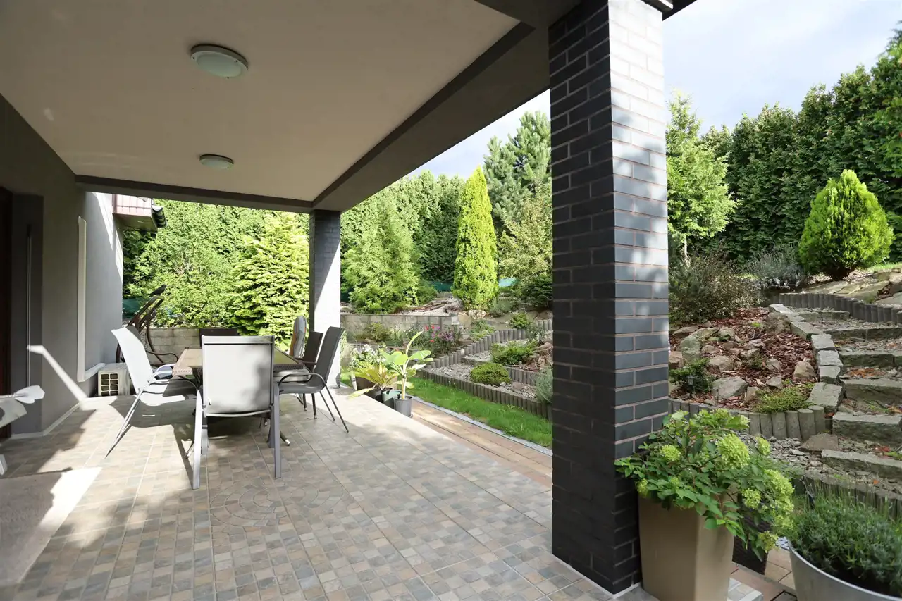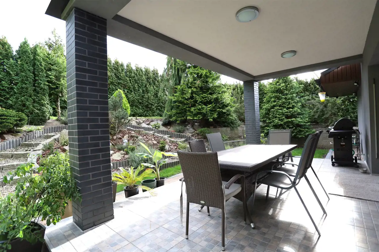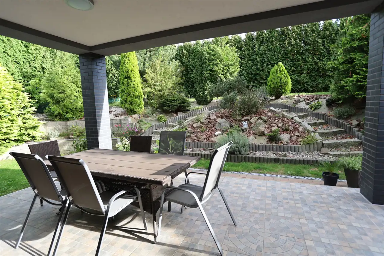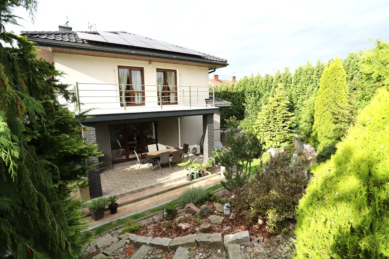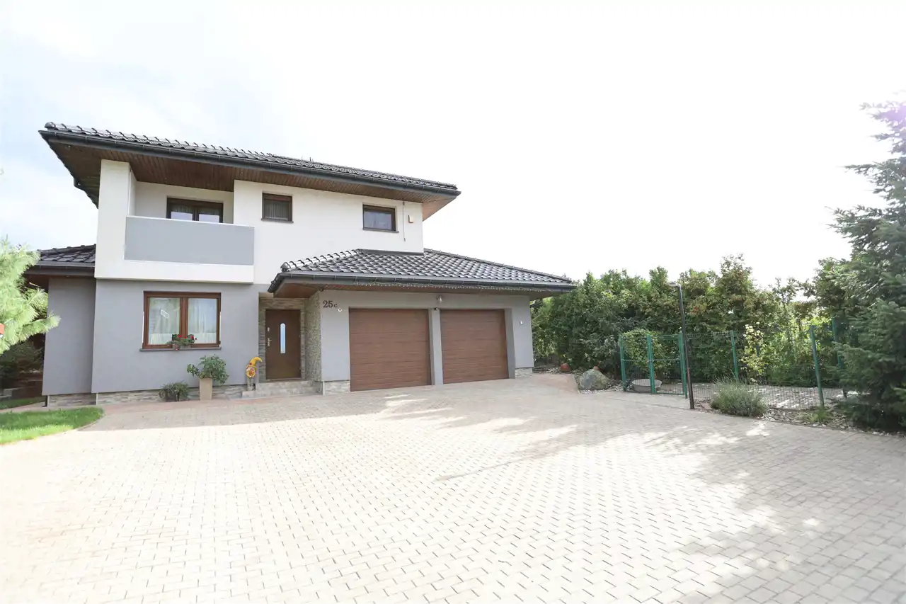 Oferujemy do sprzedaży dom piętrowy, nie podpiwniczony o powierzchni użytkowej 173 m2 z garażem w bryle budynku dwustanowiskowym wraz z pomieszczeniami gospodarczymi o powierzchni 60 m2 usytuowany na ogrodzonej i zagospodarowanej pięknymi nasadzeniami roślin działce o powierzchni 1186m2. Dodatkowo na nieruchomości znajduje się duża drewniana wiata garażowa