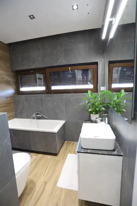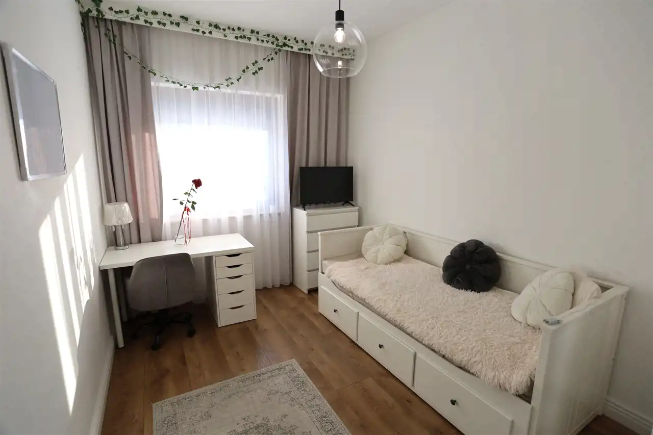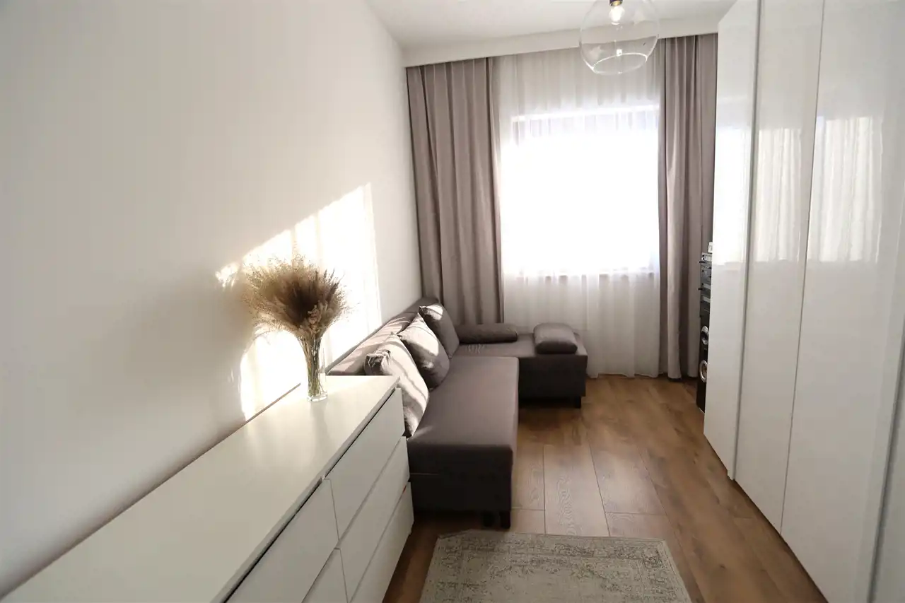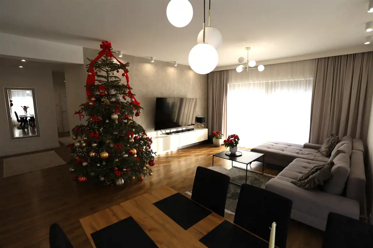 Dom został nowocześnie wykończony i wyposażony. Na podłogach panele. Kuchnia z nowoczesną zabudową z meblami lakierowanymi oraz sprzętem AGD w zabudowie ( płyta indukcyjna, piekarnik, mikrofala, zmywarka, lodówka i duży nowoczesny okap kuchenny). Wszystkie pokoje umeblowane.