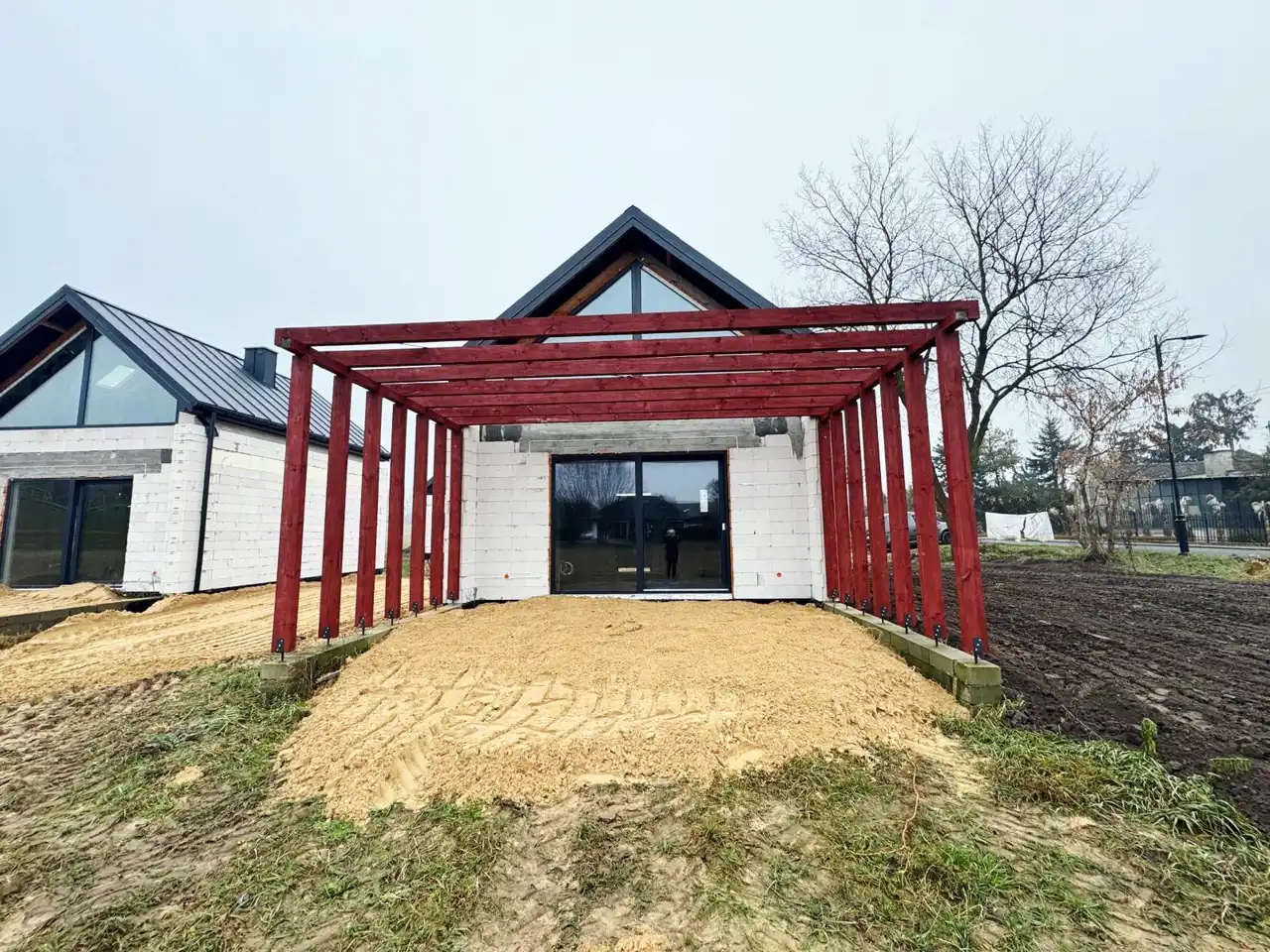 Od strony północnej dom wyposażony jest w uchylne okna dachowe, zapewniające naturalne doświetlenie wnętrz i komfort użytkowania, natomiast ekspozycja południowa daje możliwość zamontowania instalacji fotowoltaicznej, jeśli nowy właściciel zdecyduje się na takie rozwiązanie. Cała działka będzie ogrodzona, co gwarantuje prywatność, bezpieczeństwo oraz spokojne warunki do codziennego życia