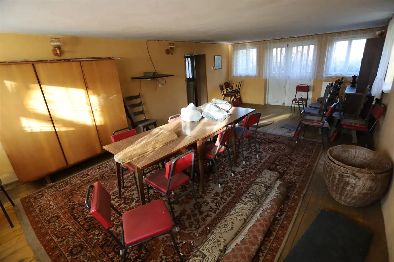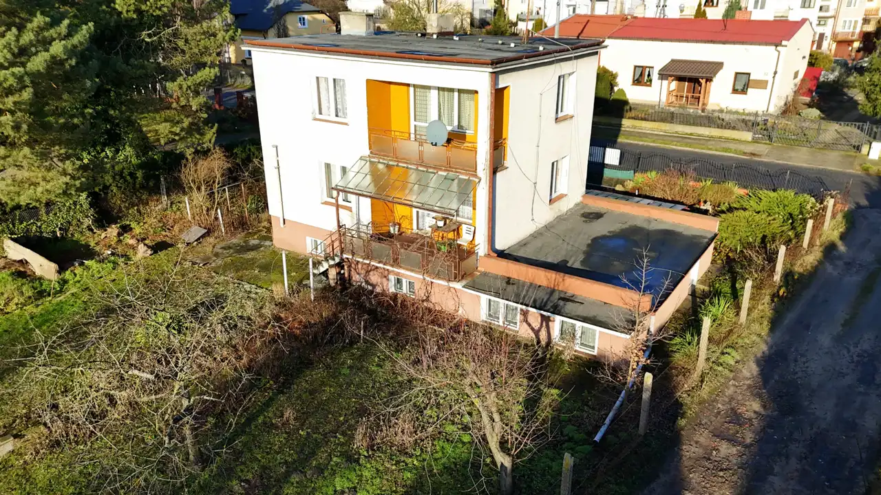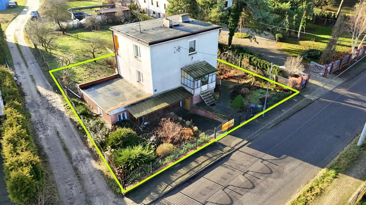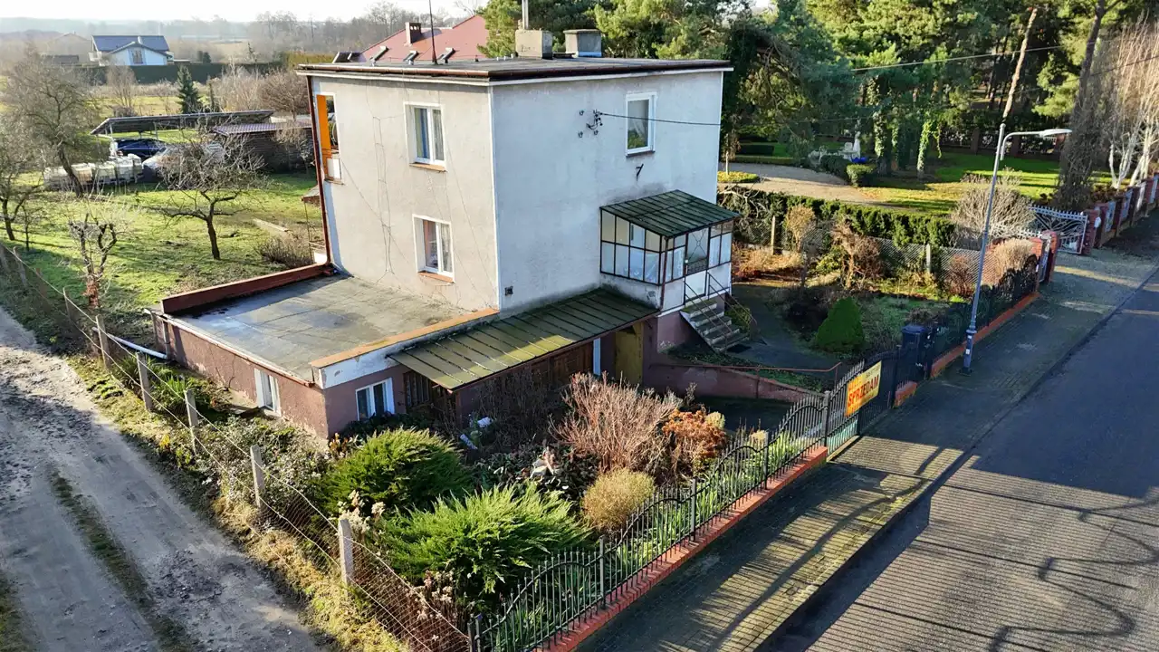Budynek o powierzchni całkowitej 180 m2 (użytkowej 83 m2), pobudowany w 1974 roku z cegły kratówki i suporeksu w systemie dwu-mur. Stropy ackermana. Budynek wymaga przeprowadzenia generalnego remontu. Wjazd na działkę z gminnej ulicy asfaltowej, możliwość wykonania drugiego zjazdu. Nowe ogrodzenie frontowe kute z podmurówką z klinkieru. Instalacja elektryczna w miedzi, centralnego ogrzewania stalowa. Budynek ogrzewany kilkuletnim kotłem na eko-groszek podajnikiem. Okna w większości domu PCV, drzwi wejściowe stalowe w dobrym stanie.