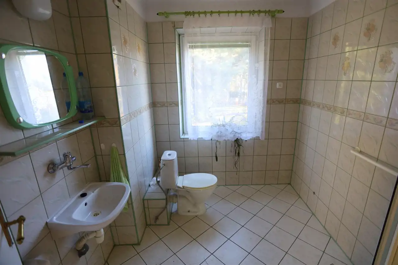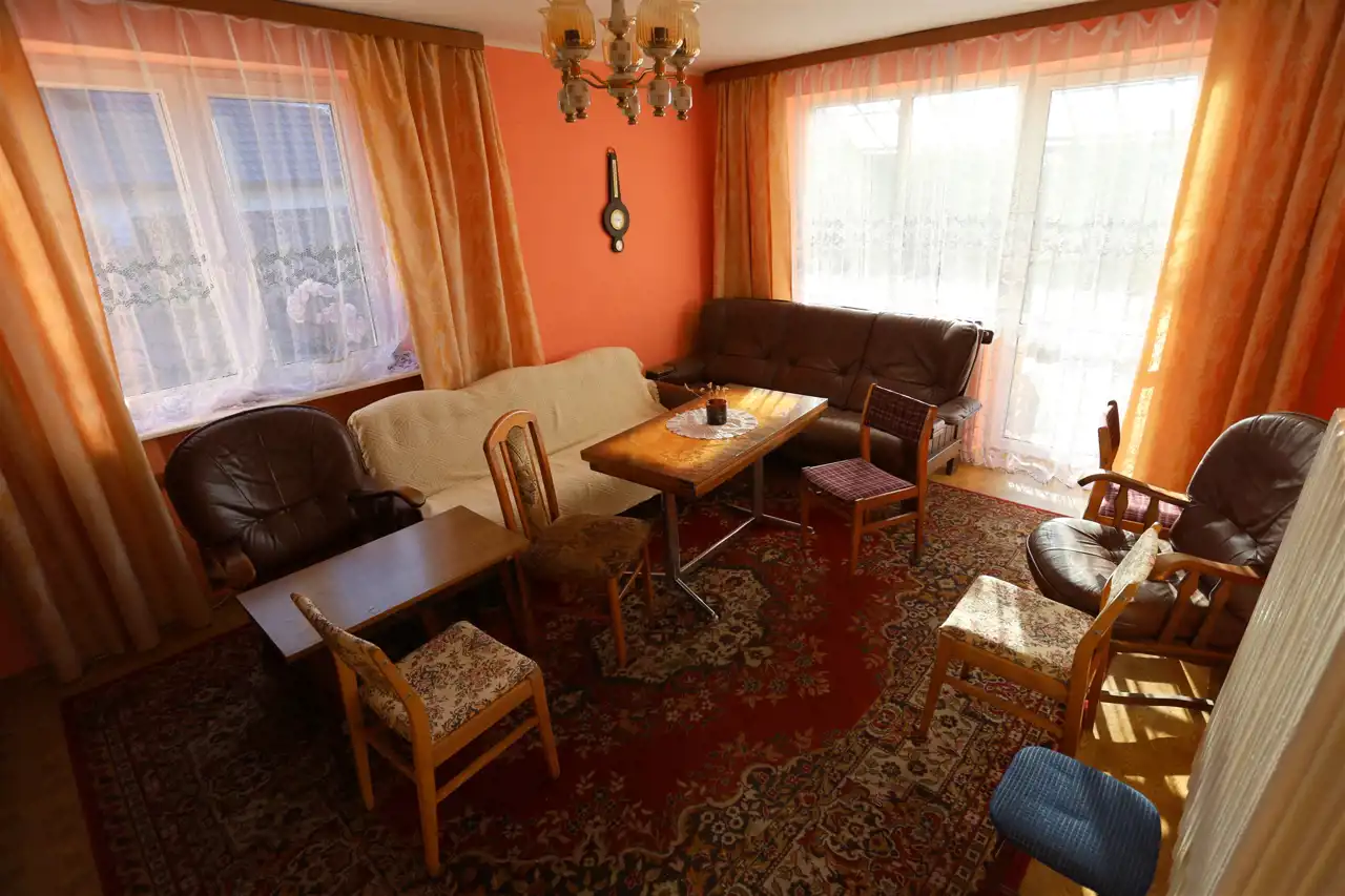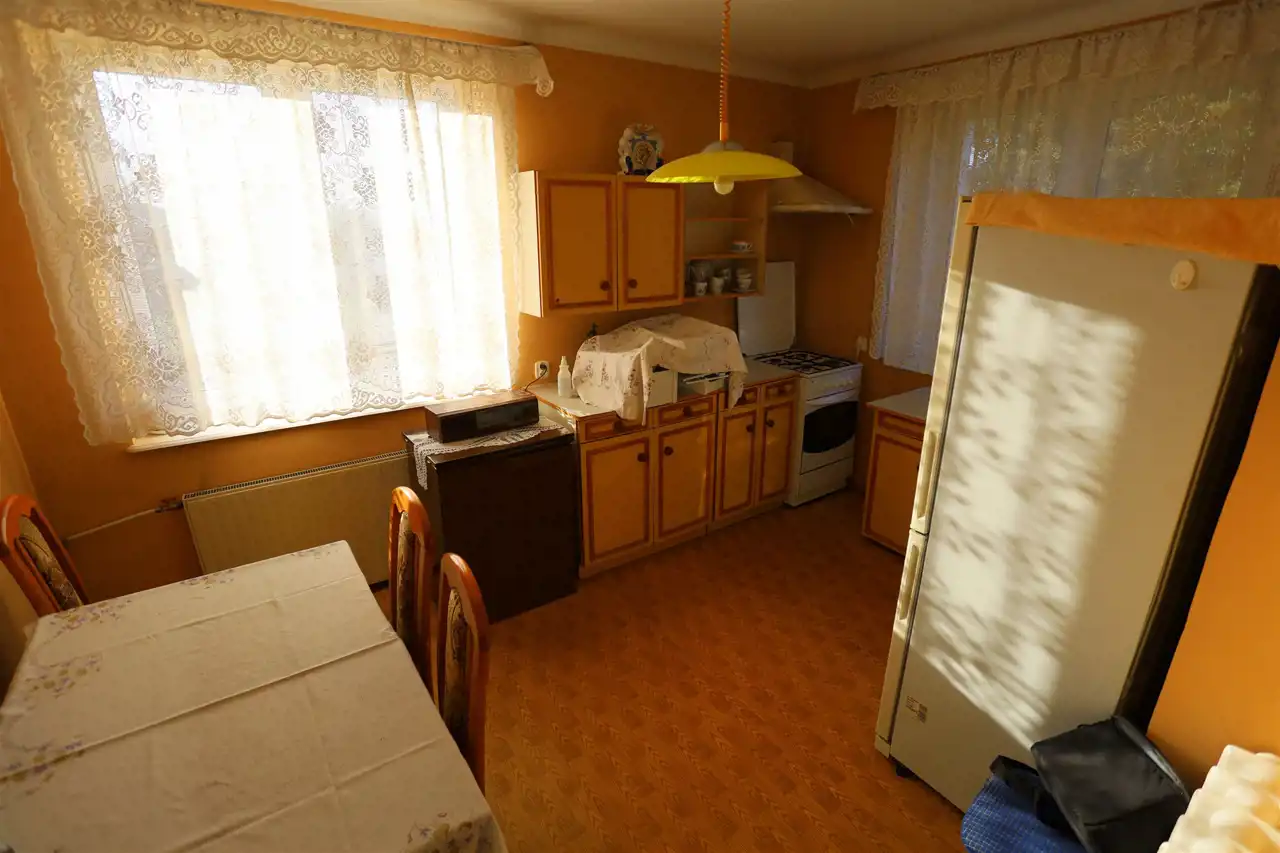 Budynek o powierzchni całkowitej 180 m2 (użytkowej 83 m2), pobudowany w 1974 roku z cegły kratówki i suporeksu w systemie dwu-mur. Stropy ackermana. Budynek wymaga przeprowadzenia generalnego remontu. Wjazd na działkę z gminnej ulicy asfaltowej, możliwość wykonania drugiego zjazdu. Nowe ogrodzenie frontowe kute z podmurówką z klinkieru. Instalacja elektryczna w miedzi, centralnego ogrzewania stalowa. Budynek ogrzewany kilkuletnim kotłem na eko-groszek podajnikiem. Okna w większości domu PCV, drzwi wejściowe stalowe w dobrym stanie.