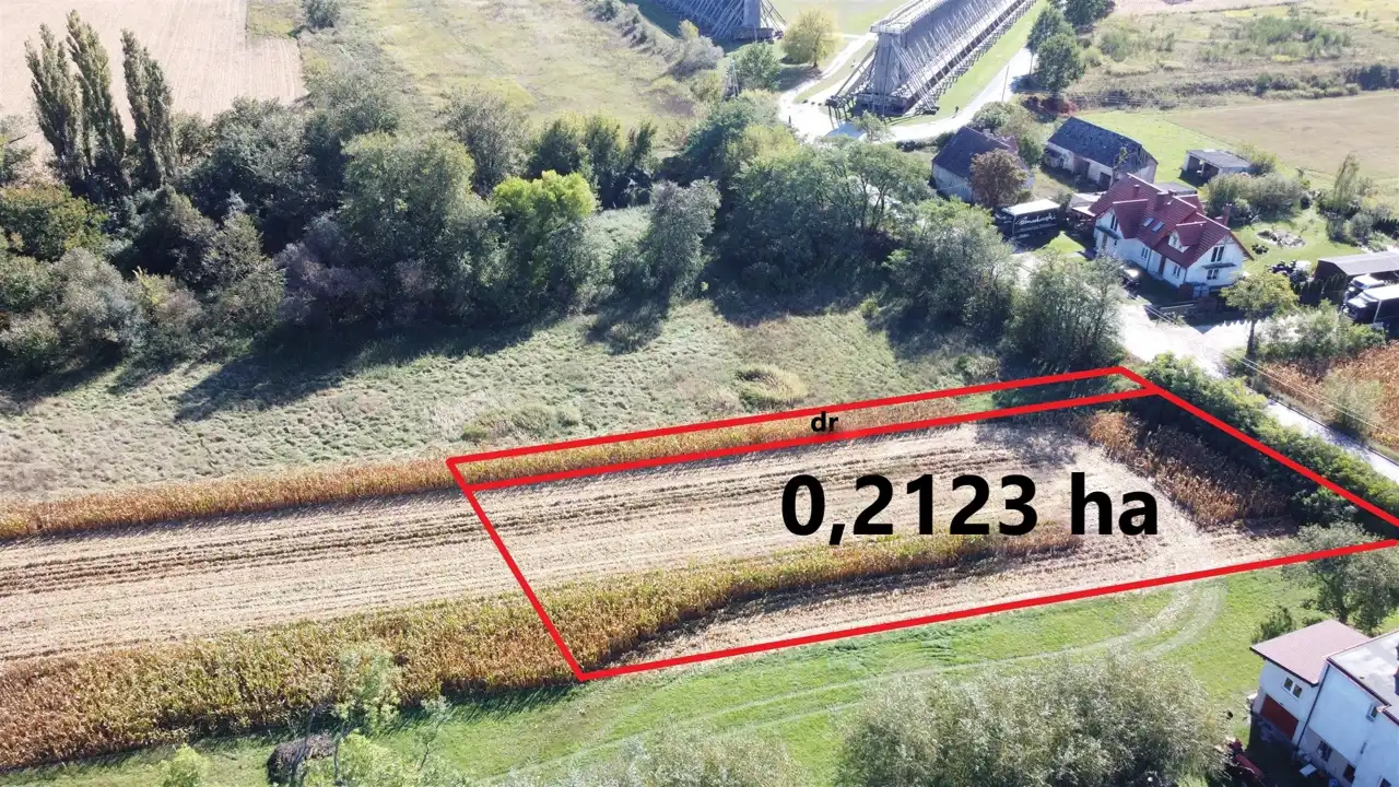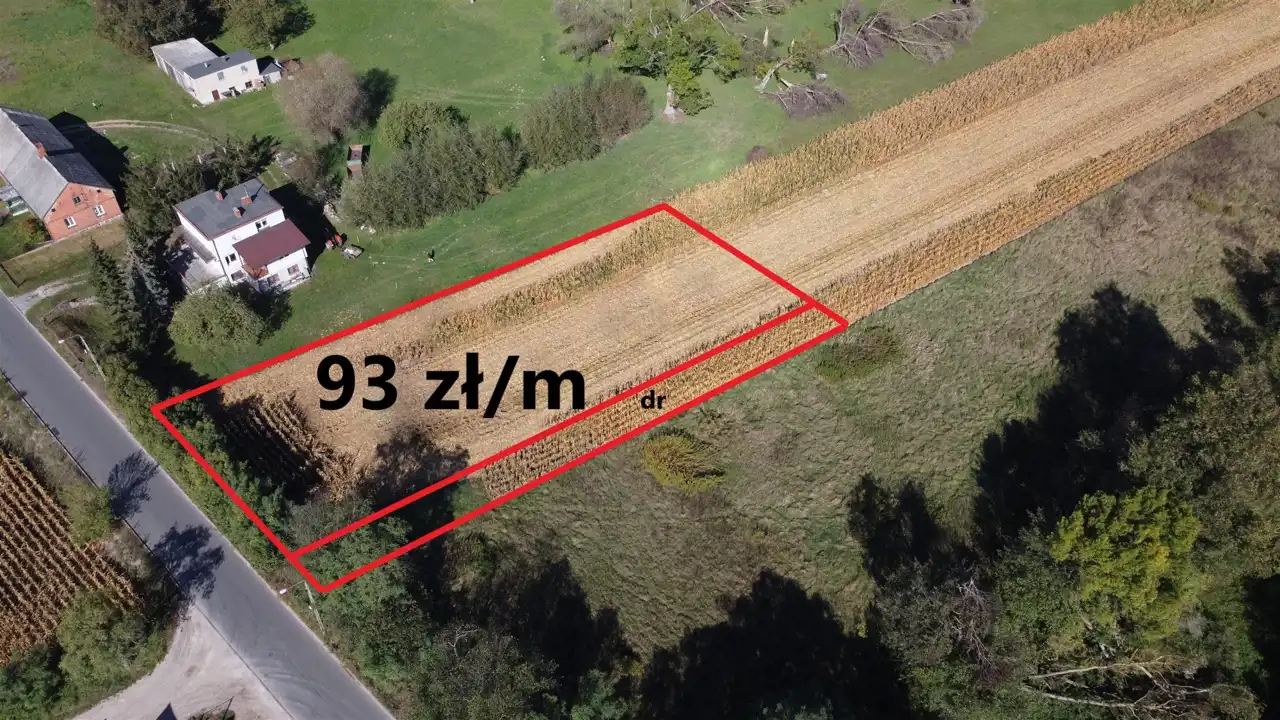 Działka o pow. 2123 m2 z dostępem do drogi gminnej w której są media: prąd, woda i kanalizacja.