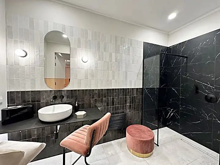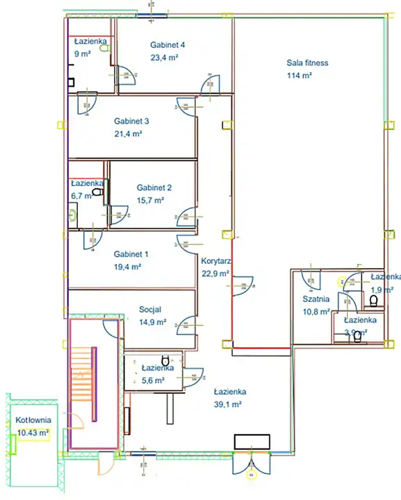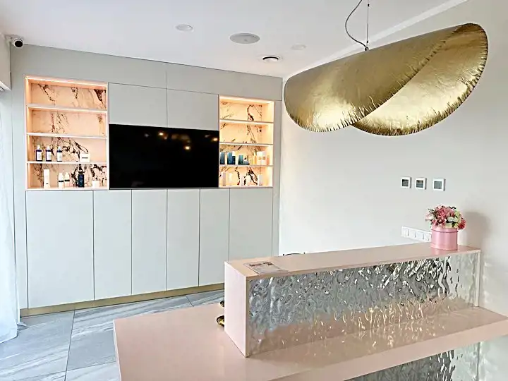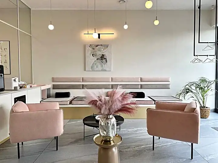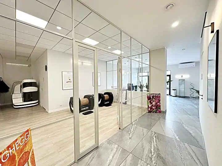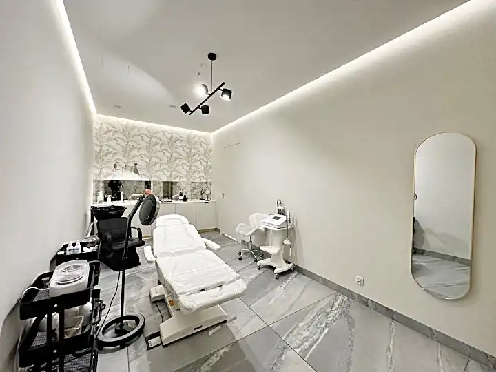 Lokal zaadaptowano pod salon kosmetyczny z wydzieloną częścią do zajęć fitness i gabinetami zabiegowymi.