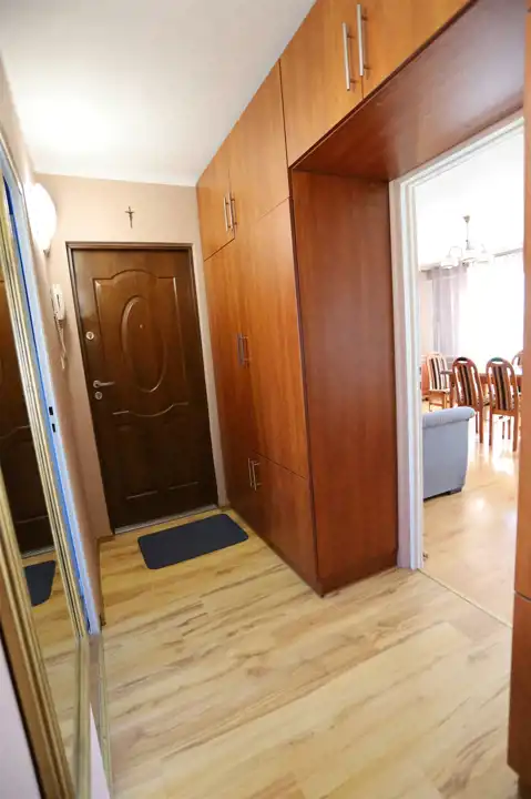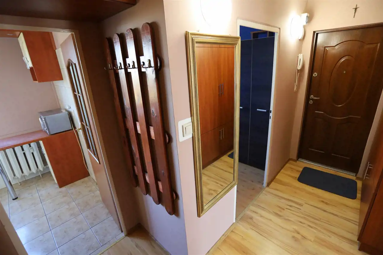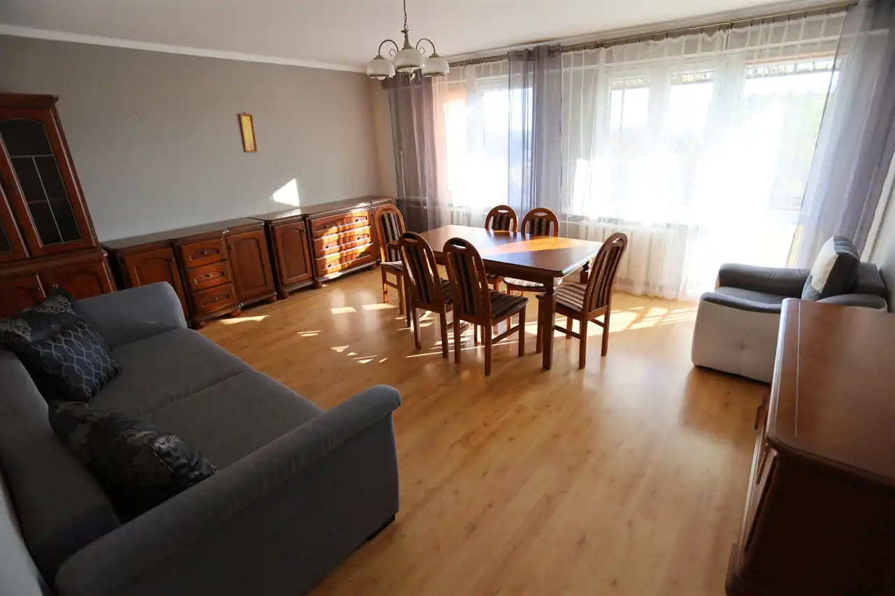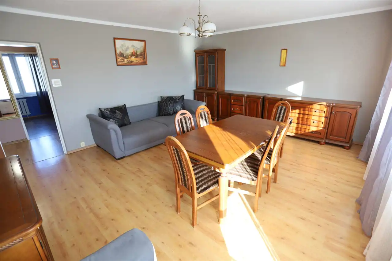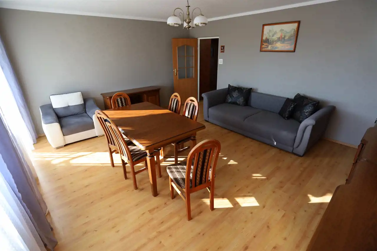 W cenie mieszkania całe umeblowanie z wyposażeniem widoczne na zdjęciach oferty z wyłączeniem stołu z krzesłami i pralki.