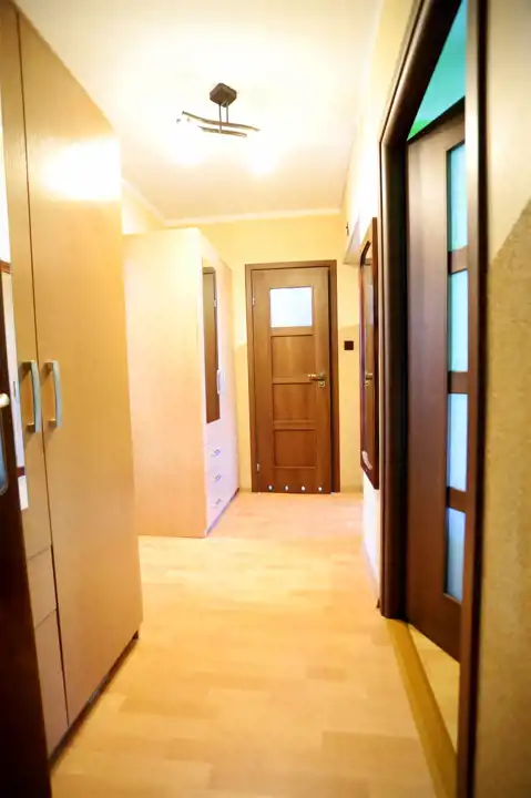 W mieszkaniu mamy 2 pokoje (25/8 m2), oddzielną i widną kuchnię (5m2), przedpokój (5m2), łazienkę z kabiną prysznicową (4 m2) i wc. Z dużego pokoju wyjście na 2-metrowy balkon od strony płd.-zach.