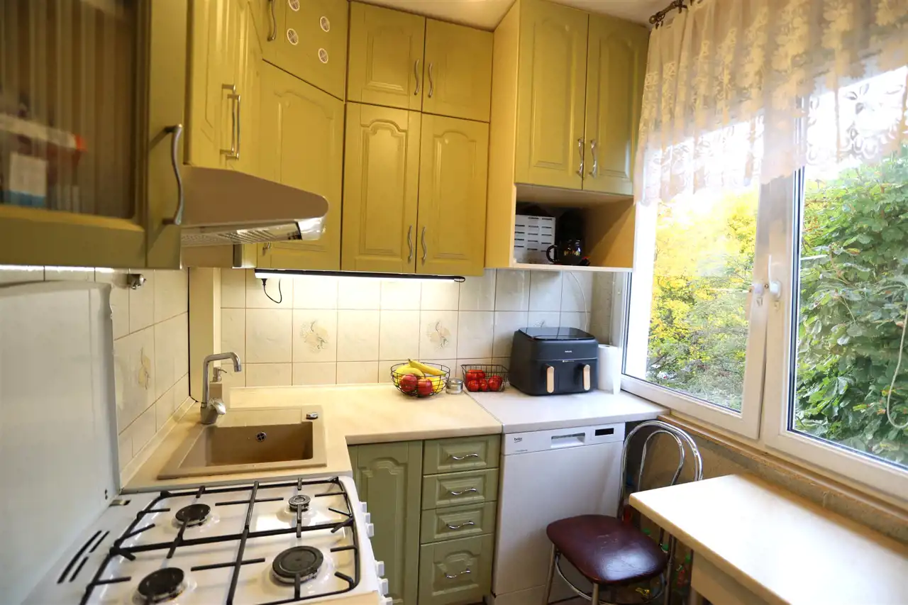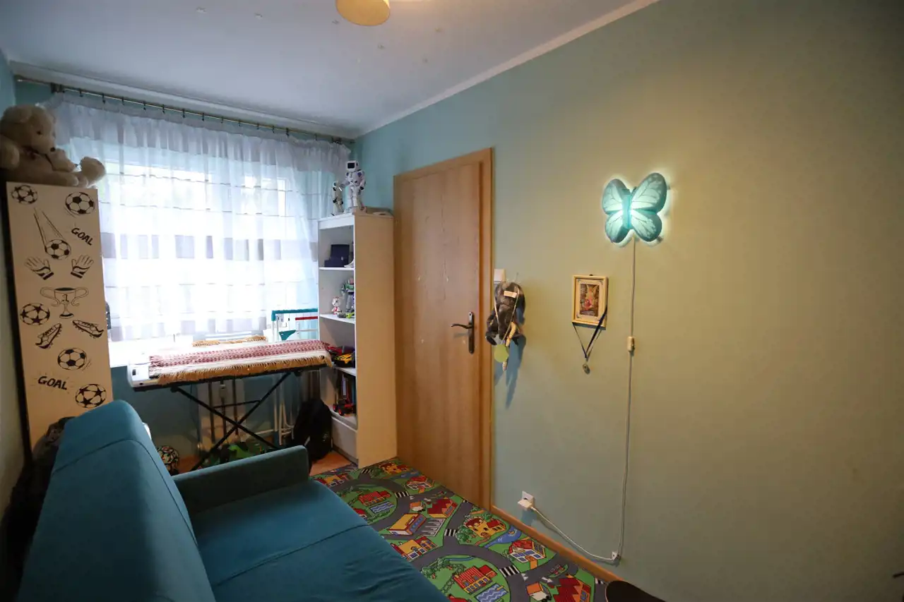 W mieszkaniu znajdują się: 3 pokoje (14/10/7,5 m2), oddzielna, widna kuchnia (5m2), przedpokój (6m2), łazienka z wanną (4 m2) i oddzielne wc. Ponadto mieszkanie posiada balkon (3 m2) oraz dużą piwnicę(6m2). Okna PCV, na ścianach gładzie gipsowe, na podłogach panele w przedpokoju i kuchni płytki. W łazience płytki, w kuchni meble w zabudowie.