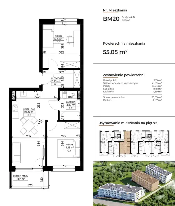 - Charakterystyka mieszkania 55.05 m2, 3 pokoje