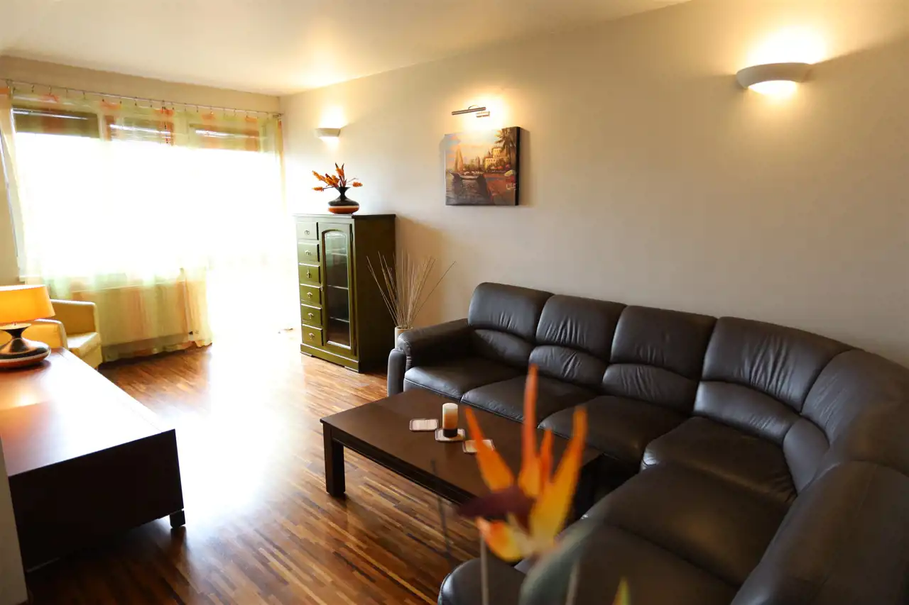 Lokal mieszkalny nowocześnie urządzony, składa się z salonu (20m2), aneksu kuchennego z jadalnią (20m2), sypialni (12m2), łazienki z wc oraz holu. W cenie całe wyposażenie mieszkania. Z salonu wyjście na 3-metrowy balkon.