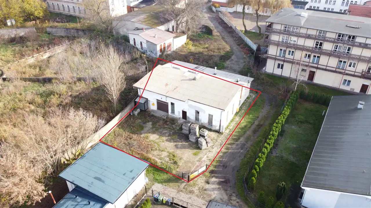 Działka zabudowana budynkiem o powierzchni 304 m2, pobudowanym w latach 50-tych ub. wieku z pustaka, dach konstrukcji stalowej kryty blachą trapezową. W budynku wydzielono 20-metrowy pokój z łazienką oraz 30-metrowe mieszkanie składające się z salonu, sypialni, aneksu kuchennego i łazienki. Mieszkania ogrzewane kotłem gazowym dwu-funkcyjnym gazem z sieci miejskiej. Reszta budynku do adaptacji.