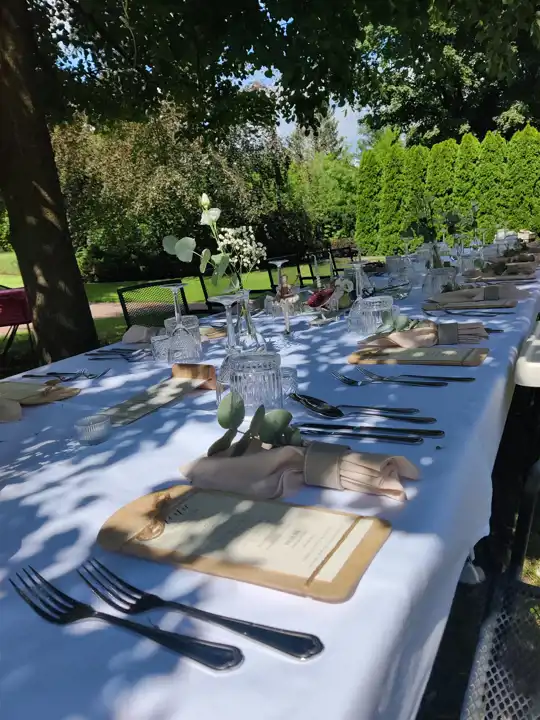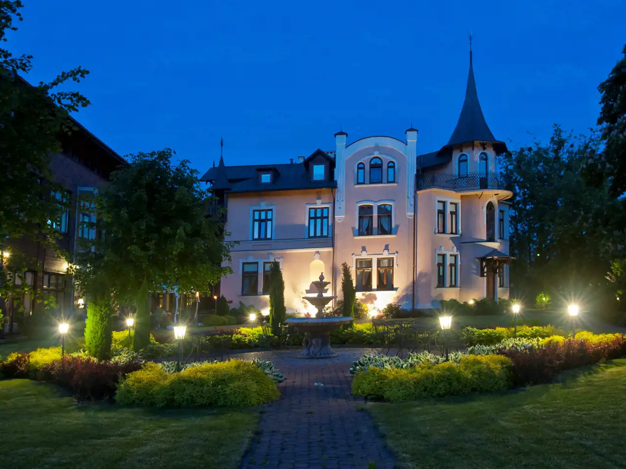 Latem restauracja przenosi się również do malowniczego ogrodu, gdzie organizowane są przyjęcia okolicznościowe, wesela z ceremonią ślubną w plenerze oraz romantyczne kolacje pod gwiazdami.