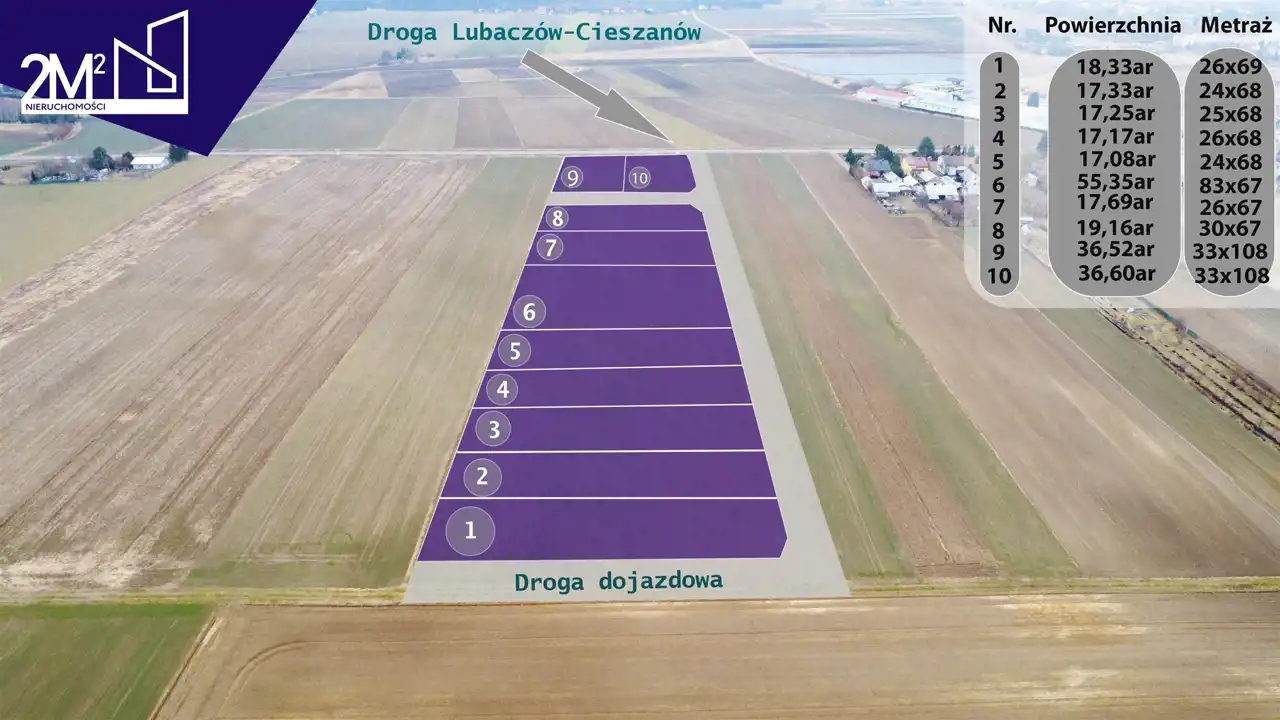 Działki położone są w Cieszanowie, bezpośrednio przy drodze Wojewódzkiej DW865.