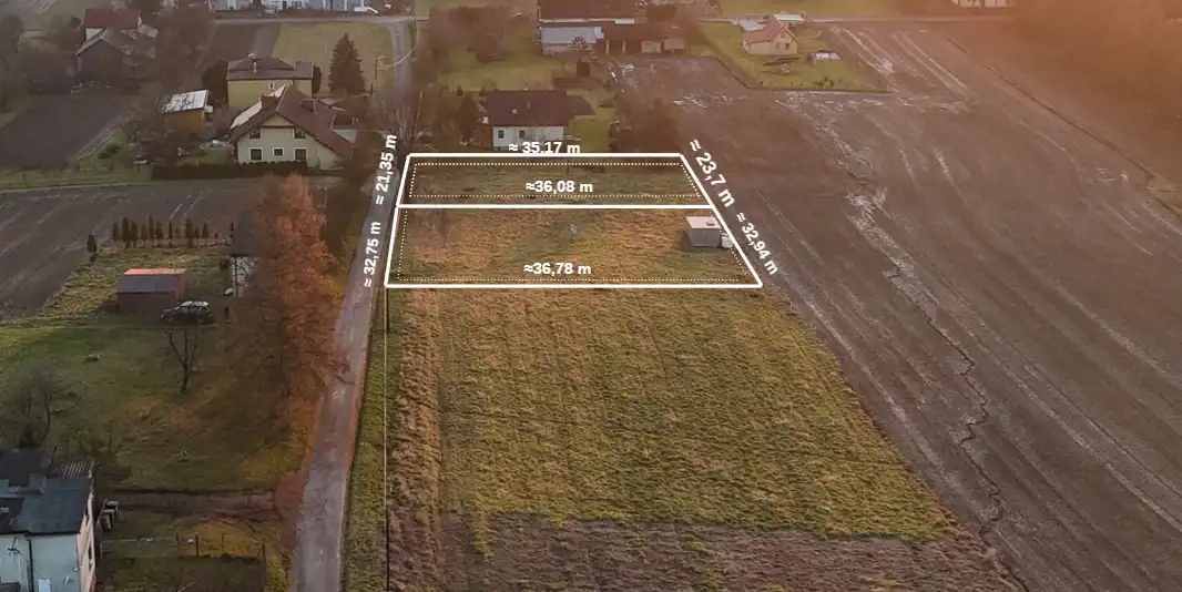 Na sprzedaż działka budowlana nr 257/35 na zdjęciu zaznaczona roboczo numerem 1 położona w malowniczej i spokojnej części Marklowic Dolnych w gminie Zebrzydowice.