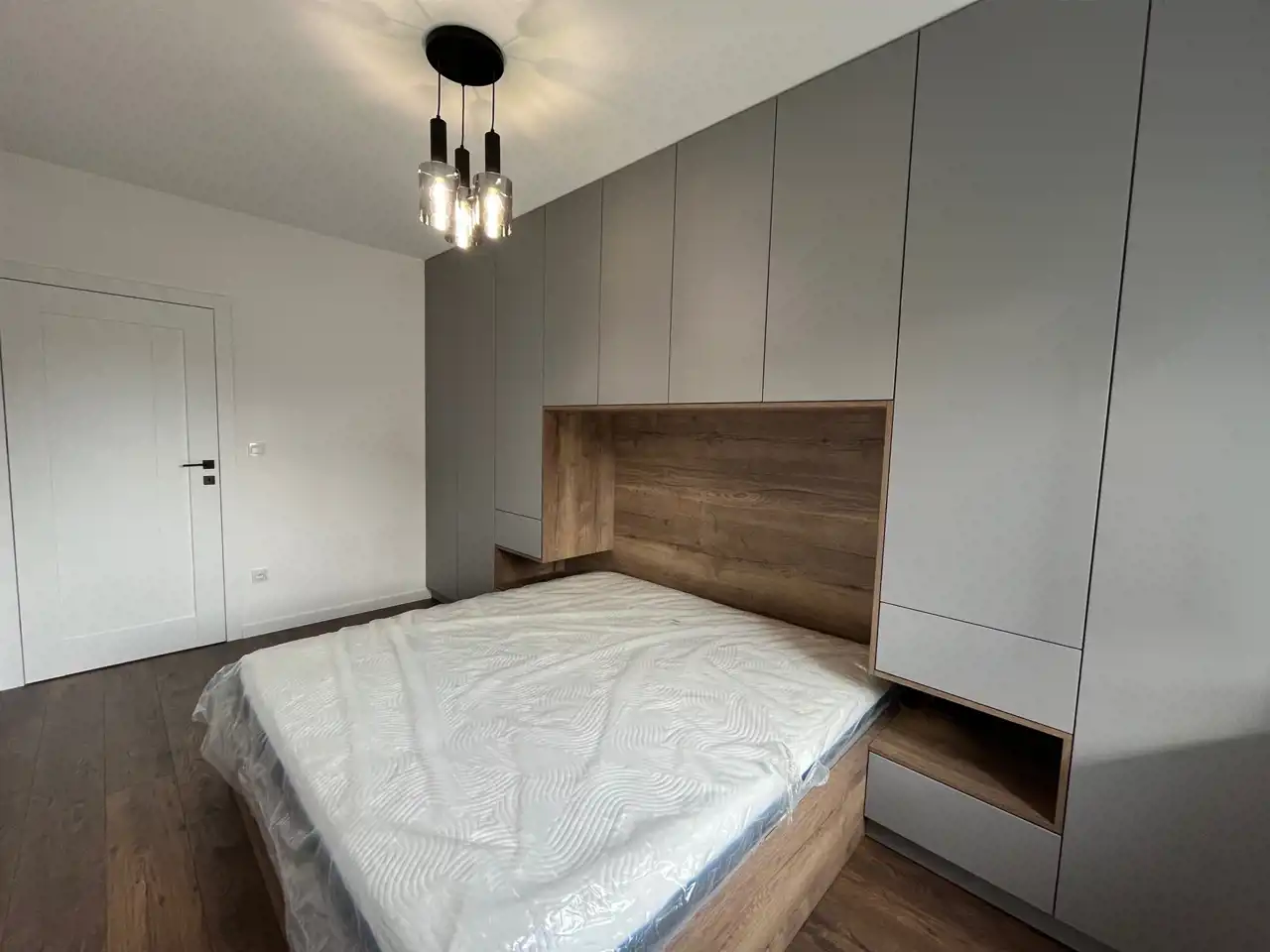 Mieszkanie składa się z pokoju dziennego z aneksem kuchennym, sypialni, łazienki.