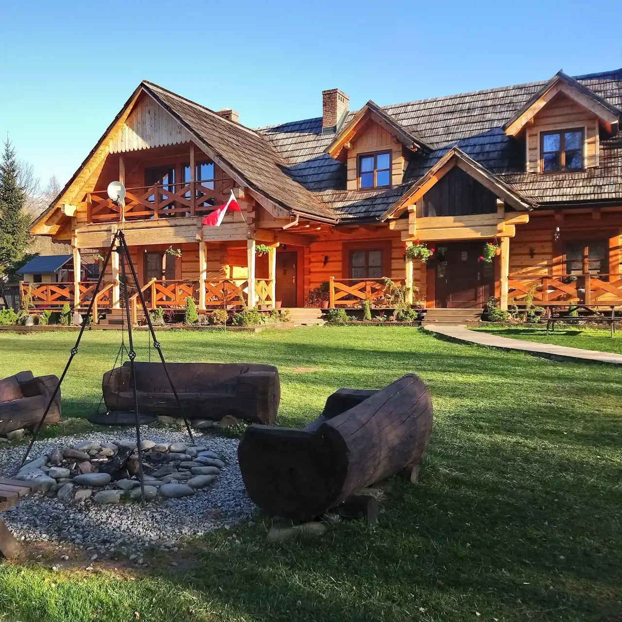 posadowiony na ogrodzonej działce o powierzchni 1534 m2 w pobliżu rzeki Wetlinka.
