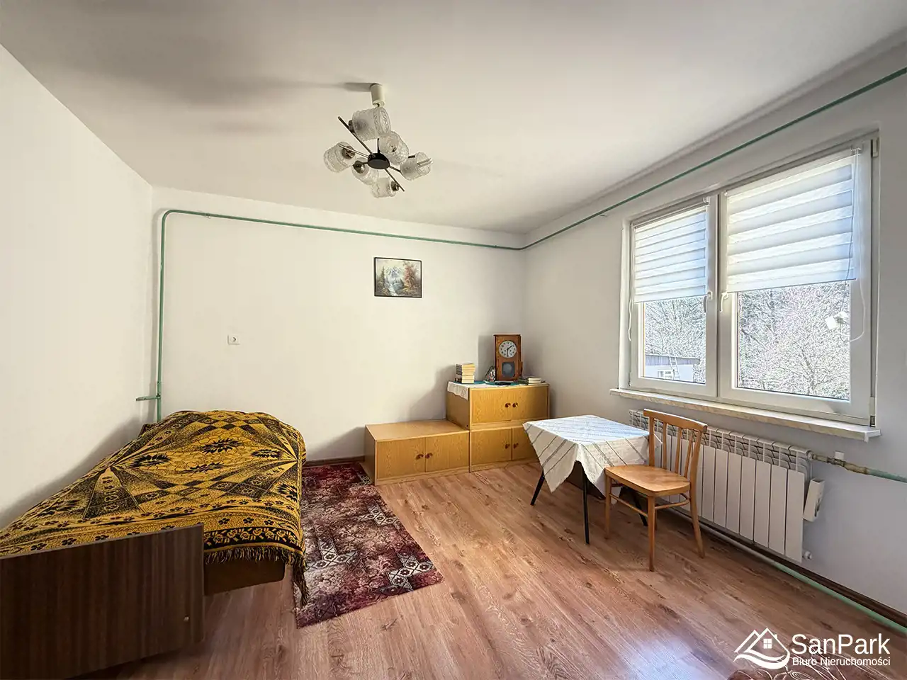 W ostatnim czasie wykonano gruntowne prace remontowe: wymieniono dach na nową blachę trapezową, wykonano nową elewację wraz z ociepleniem budynku oraz zamontowano nowe plastikowe okna. Odświeżone zostały również wnętrza pokoi – wymieniono panele podłogowe, wyrównano oraz pomalowano ściany i sufity. Łazienka do remontu, instalacja elektryczna miedziana. Wykonany nowy przyłącz energetyczny. Dom wyposażony jest w centralne ogrzewanie z piecem na paliwo stałe oraz aluminiowe kaloryfery. Na działce znajduje się drewniany budynek gospodarczy, który można zaadaptować na garaż. Teren działki jest lekko pochyły, a jej regularny kształt daje duże możliwości aranżacyjne.