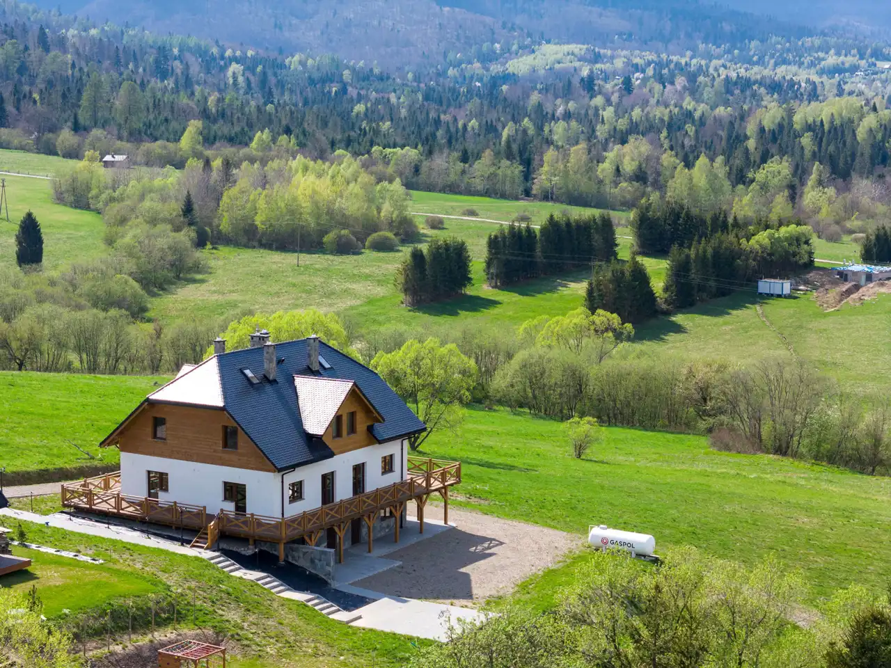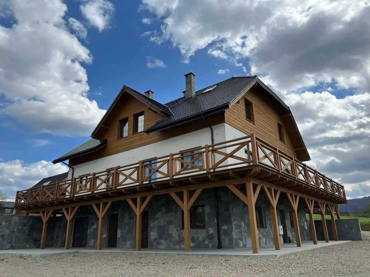 Ofertę stanowi nowopowstały budynek mieszkalny oddany do użytkowania w roku 2024. Obiekt jest w pełni wyposażony posiadający 5 apartamentów, które łącznie zapewniają 32 miejsca noclegowe. Budynek jest 3 kondygnacyjny, murowany z pięknym dużym tarasem z którego podziwiać można piękno natury o każdej porze roku. Przy wykończeniu budynku wykorzystano drewno, tak aby zachować charakter bieszczadzkiej architektury.