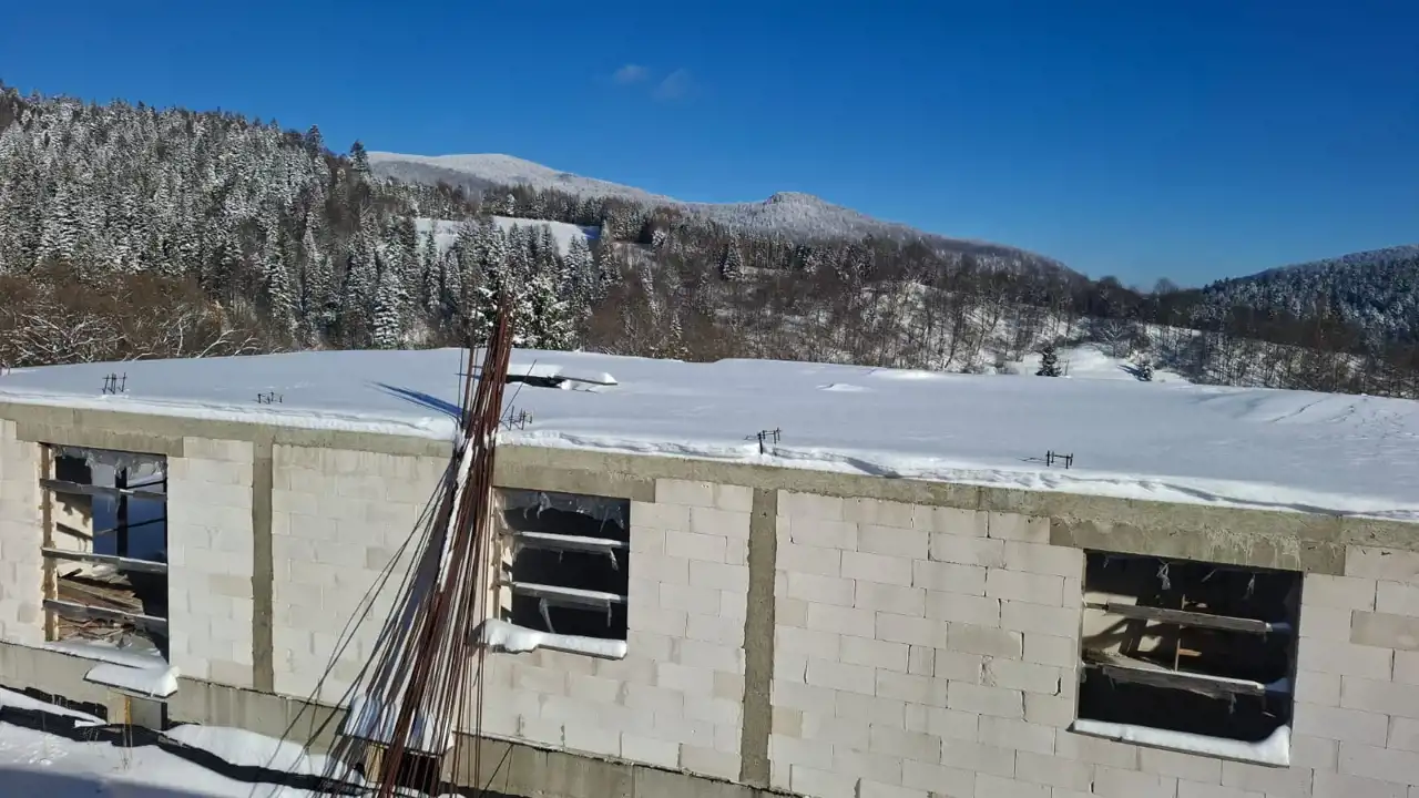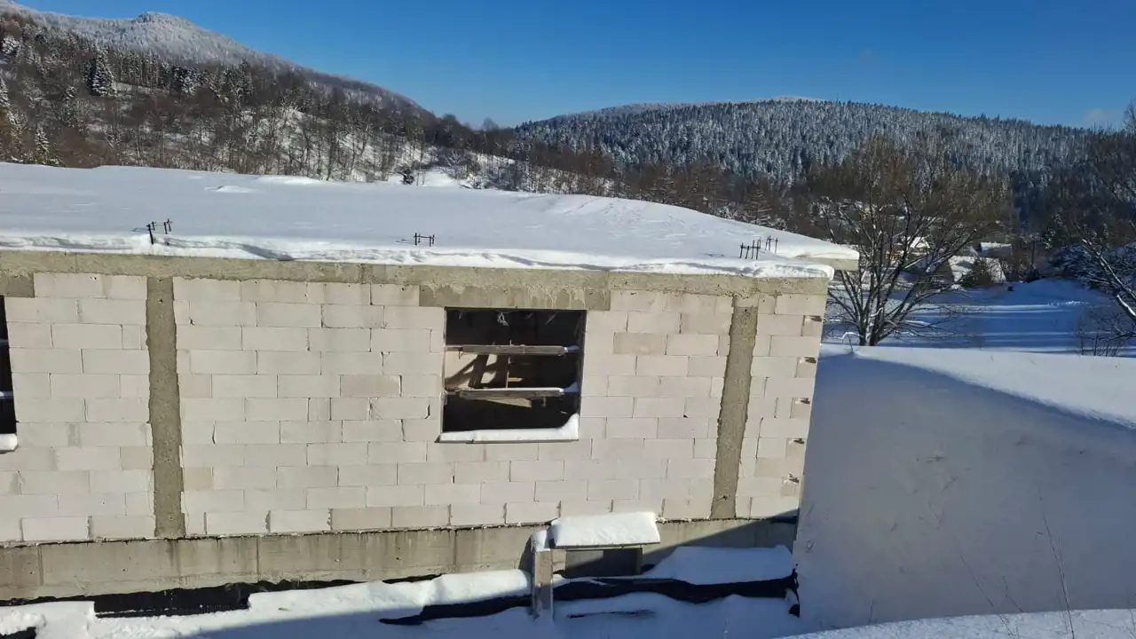 - Etap budowy: Wymurowana piwnica oraz parter, wylany strop nad parterem, wylane nadproża oraz schody łączące piwnice z parterem;