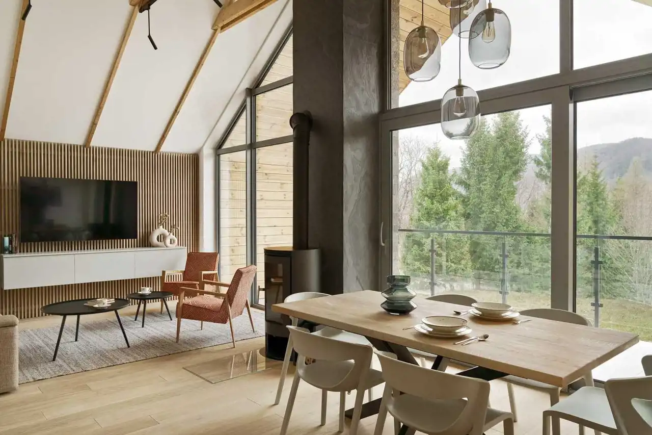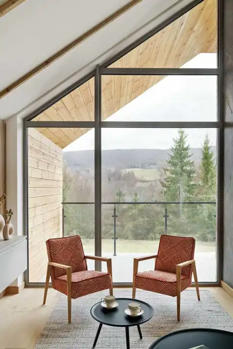 dużego salonu z oknami panoramicznymi, system przesuwny bez progowy- HS