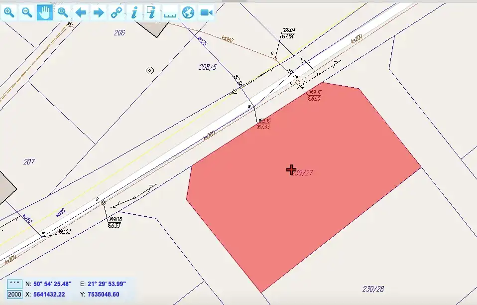 - Media Woda: na działce; Kanalizacja: na działce; Prąd: w ulicy; Gaz: w ulicy